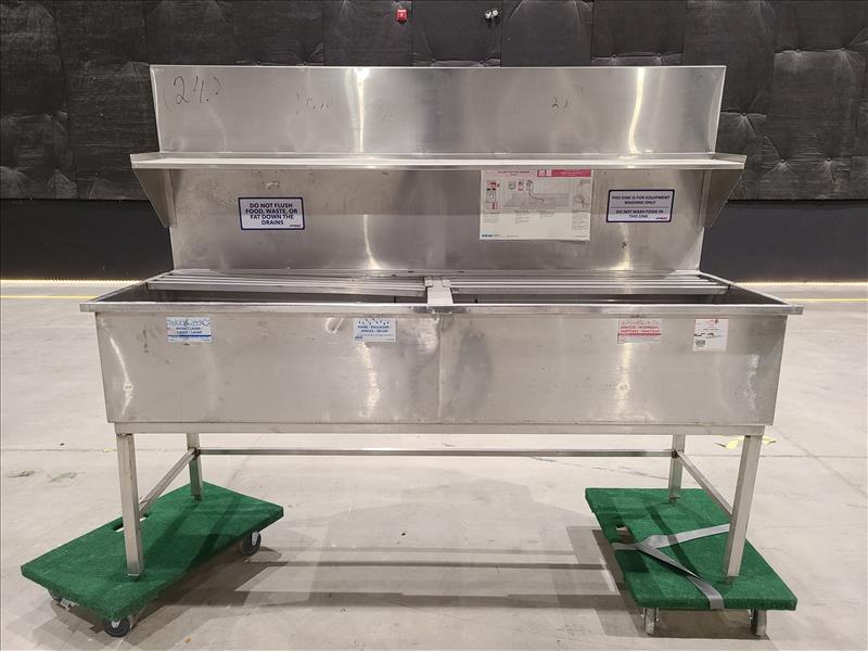 S/S Sink w/ two compartments, backsplash and drainboard.