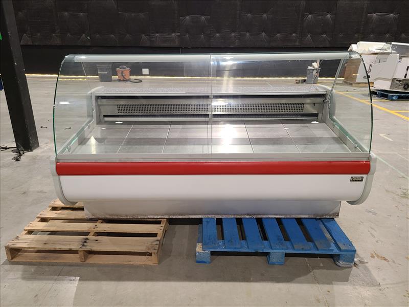 Igloo Curved Glass Refrigerated Display Case, model BSCD8, S/N. BS.8.200728.3, 100 in. x 46 in. x 48 in. H, 640lbs, 115V, 8amps, 1 Phase, 60Hz.