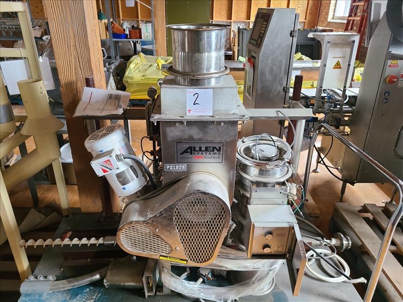 Allen/FMC ribbon blender, mod. 72185-1, ser. no. 72185-A, stainless steel, 2 hp w/ Piab CU-1B control