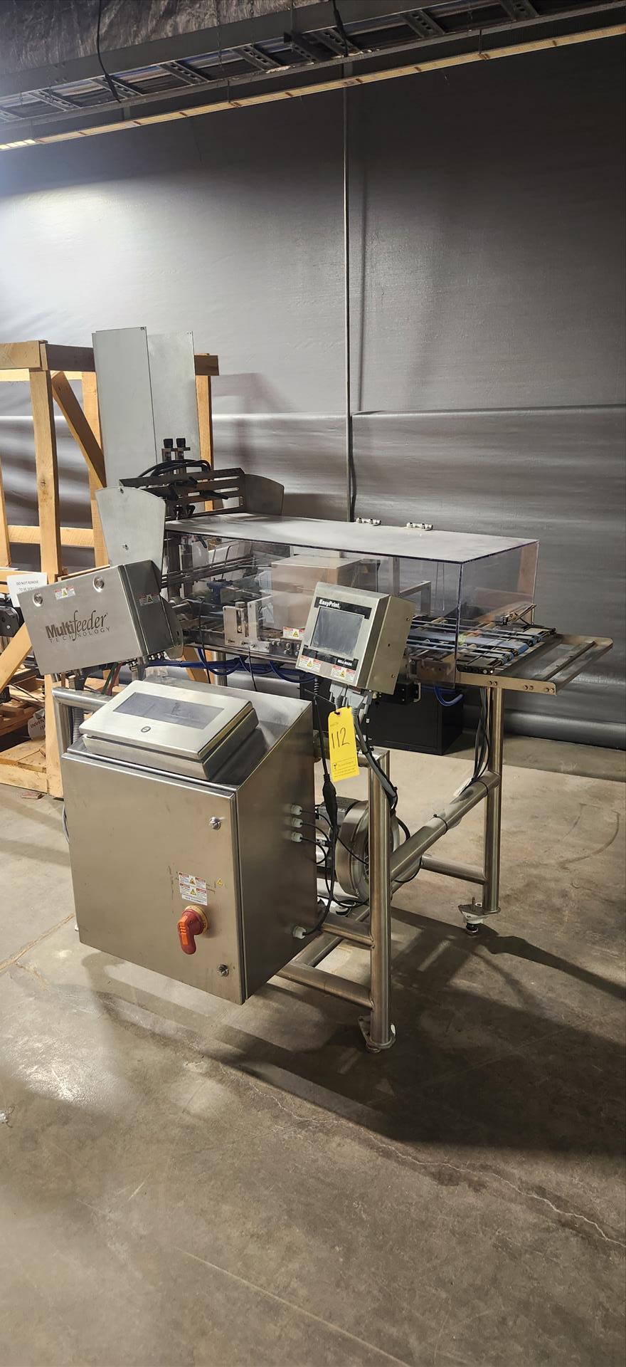 MultiFeeder hygienic washdown friction feeder c/w Bell-Mark Easy Print thermal transfer printer and Bosch 1.3 kw vacuum pump [Loc. B5, Greenhouse]