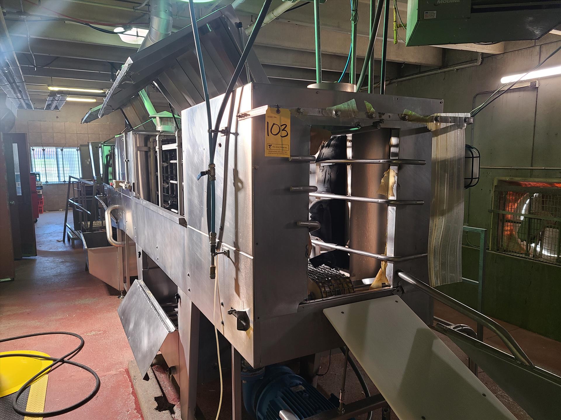 tray washer, 3-zone, stainless steel, infeed conveyor c/w (2) centrifugal pumps, 25/30 hp ea. [Live Receiving]
