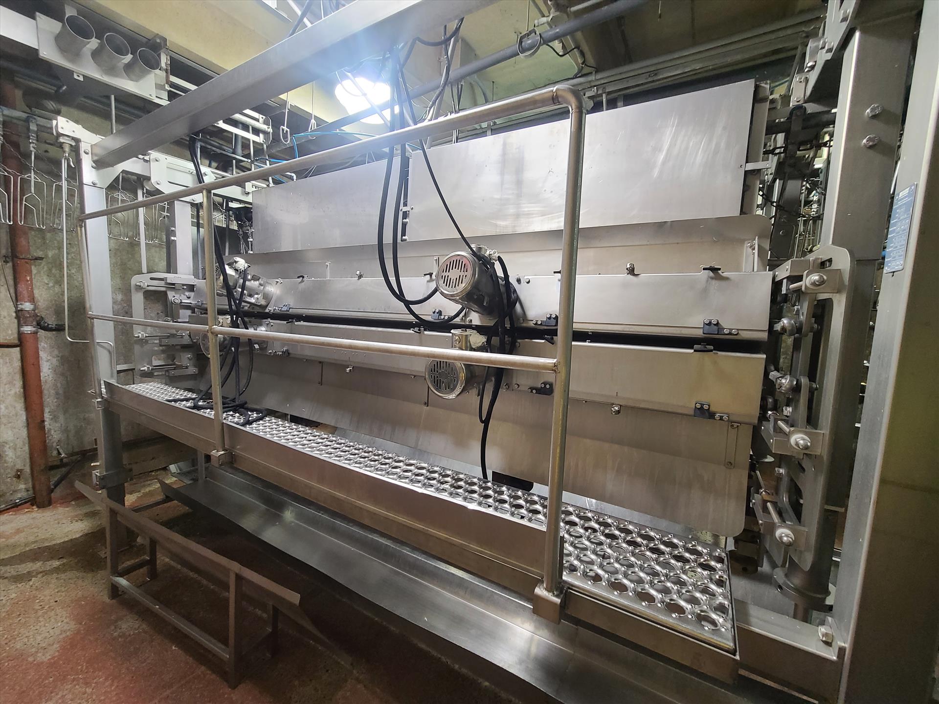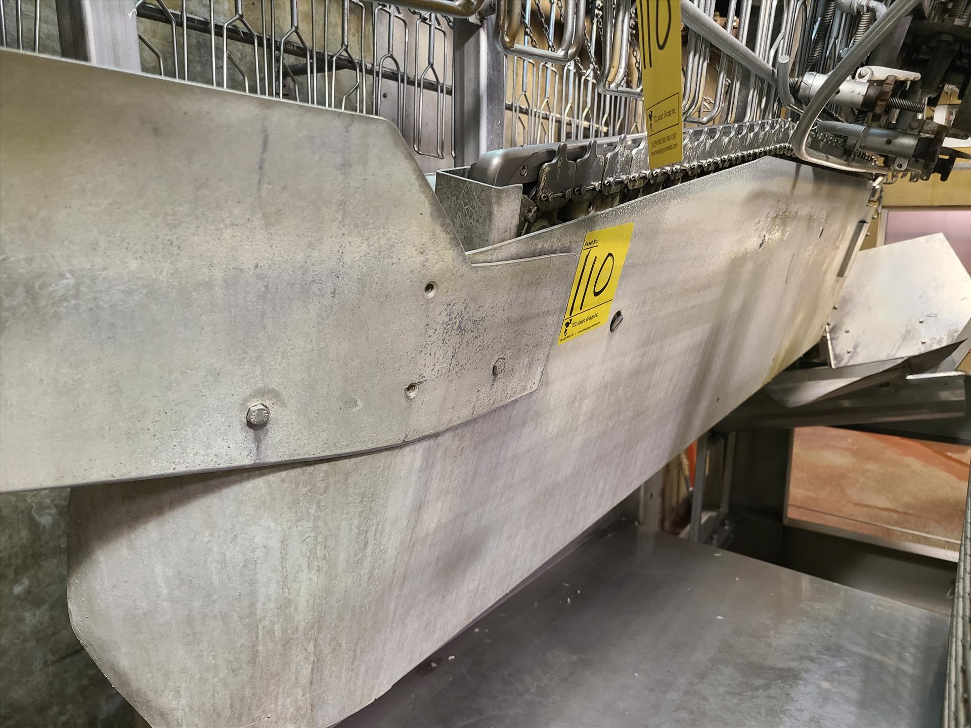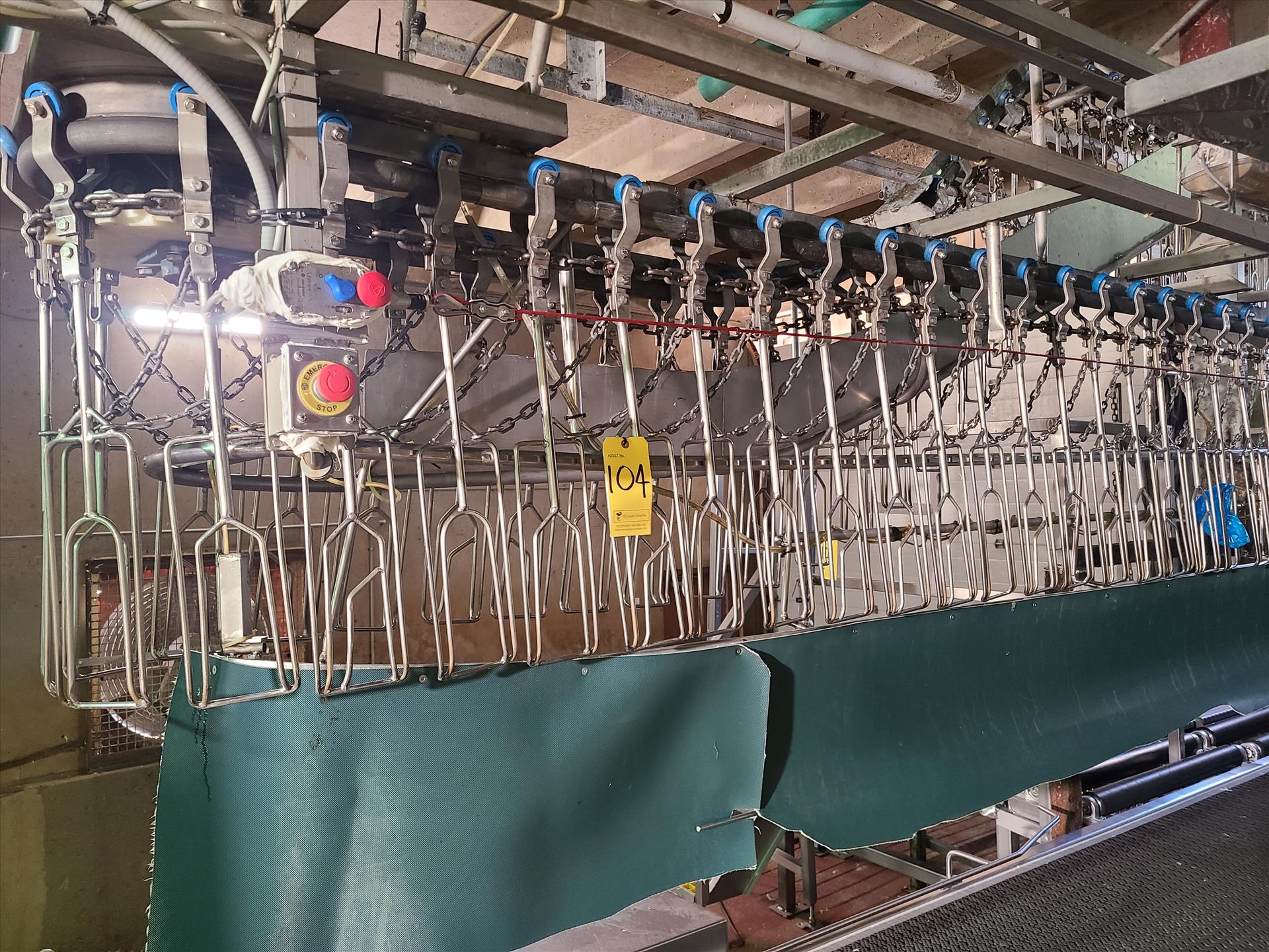 Evisceration overhead conveyor w/ plastic shackles at 6 in. approx. 475 ft. long [Evisceration 1]