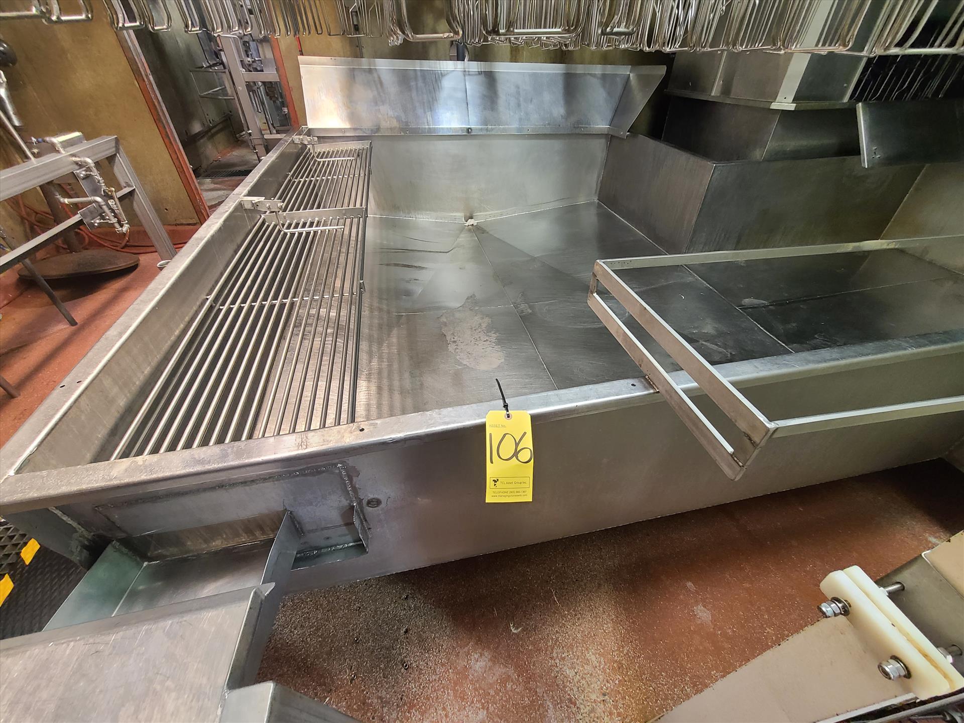 blood trough, stainless steel, approx. 10 ft. x 16 ft. x 24 in. deep [Kill Line]