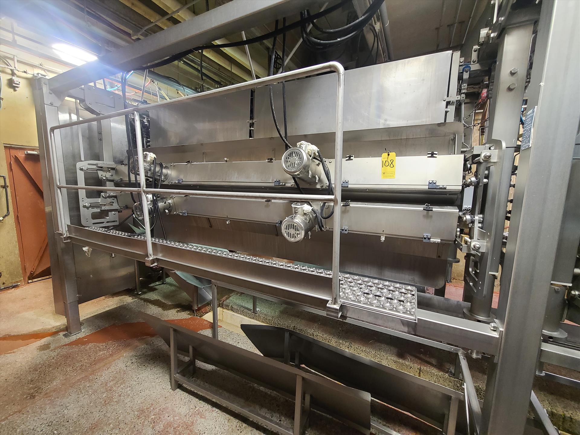 tray belt conveyor, stainless steel frame, approx. 24 in. x 14 ft. w/ washdown motor [Live Receiving]
