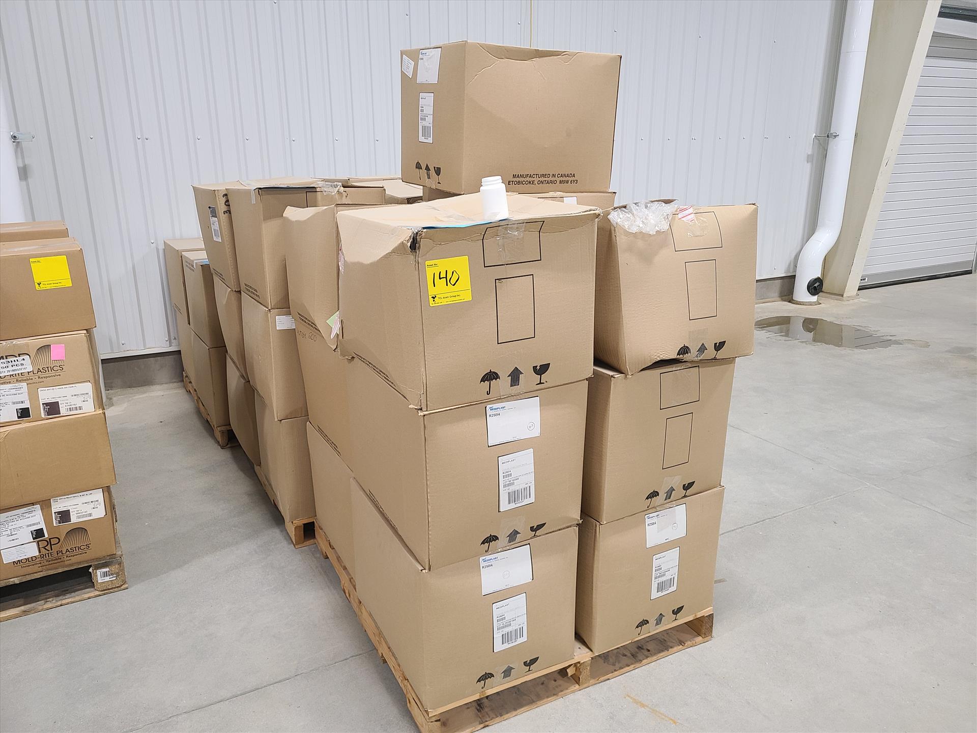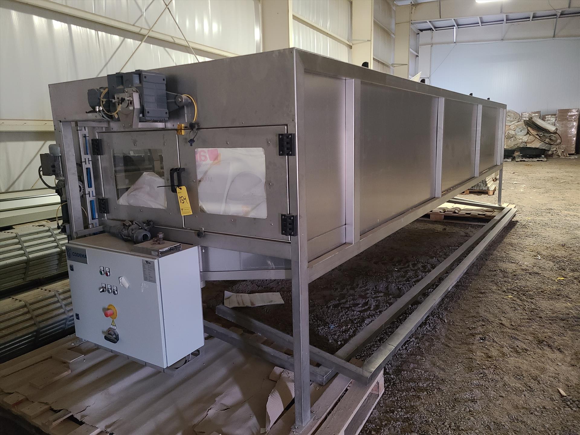ADCO Vertical Glue Rotary Cartoner, Model Compact 4-SS, stainless steel, 8-pocket quick size adjust starwheel w/ Capable of speeds up to 60 CPM. Has a carton size range: 2.63in. - 6in. (length) x 1in. - 3in. (width) x 4in. - 8in. (depth). Serial Number 6005HG. Universal Robots pick and place robot bottle/product loader, Model UR30, ser. no. 20195300090, Nordson MiniBlue II glue applicator, Nordson hot melt, Model ProBlue 4, ser. no. SA18M51922 w/ Nordson Spectra30 pattern control, ser. no. JC19B17320, and AB PanelView Plus 600 touch screen controls c/w attachments (NEW 2019 - never installed) (Tagged 109 and 110)\n(Subject to confirmation. The winner will be determined based on the sum of bids on lots 109 to 114 vs bid on bulk lot 108)