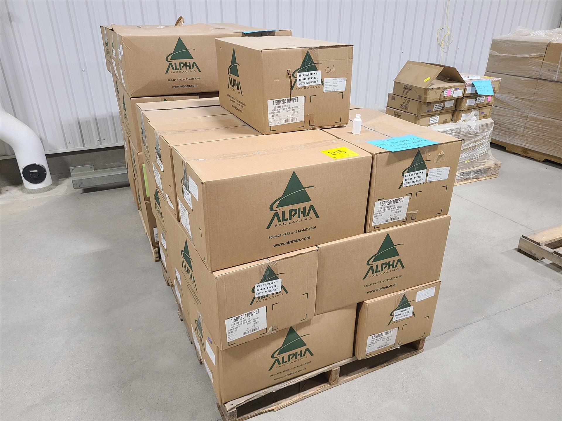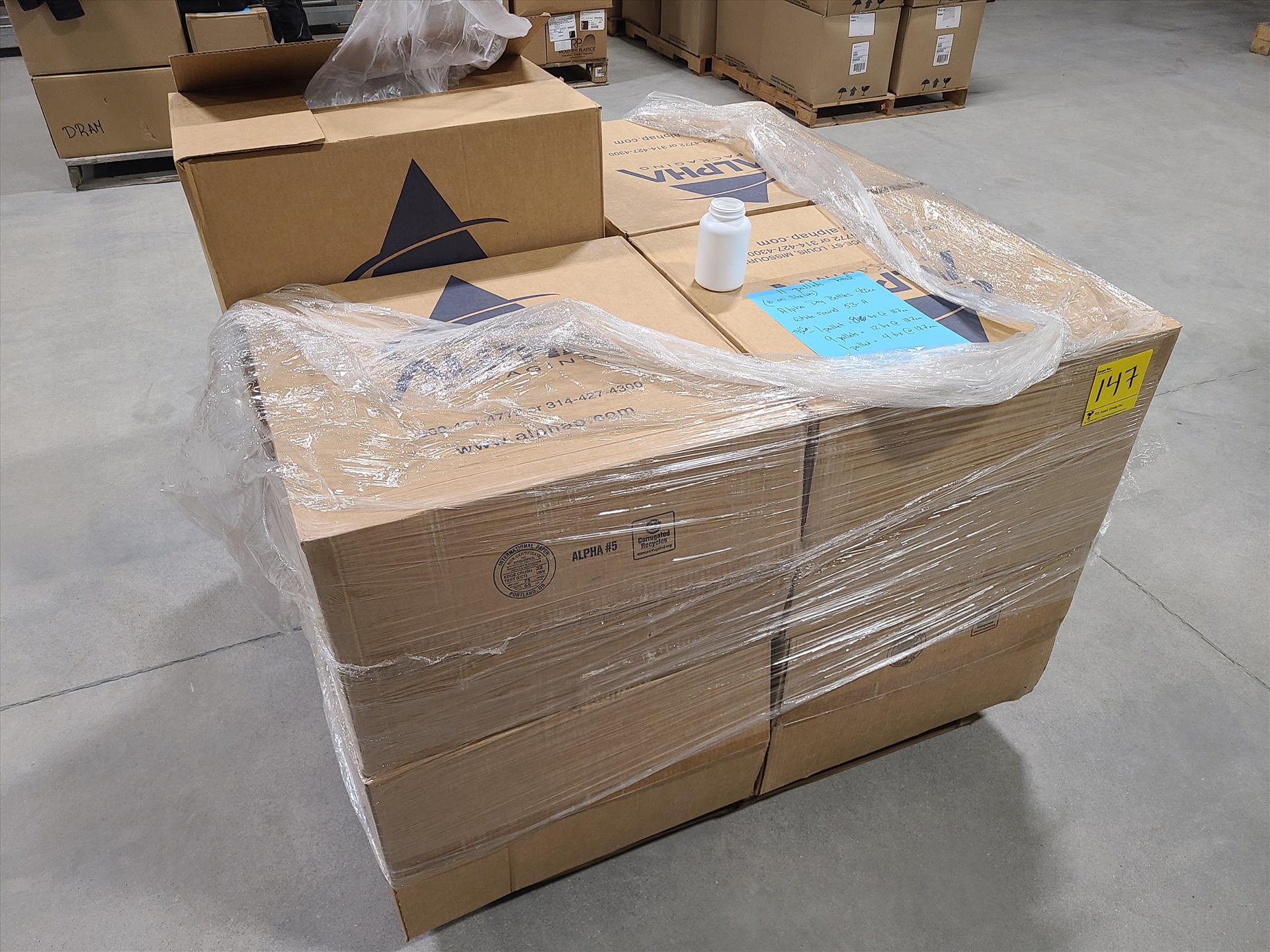 (1 pallet) incl. 6 cases x 990 ea. = 5940 Alpha amber oil bottles, 30 ml; 3 cases x 1300 ea. = 3900 Boston round white oil bottles; 6 cases x 4000 ea. Integrated dosing caps, 20mm (NEW)
