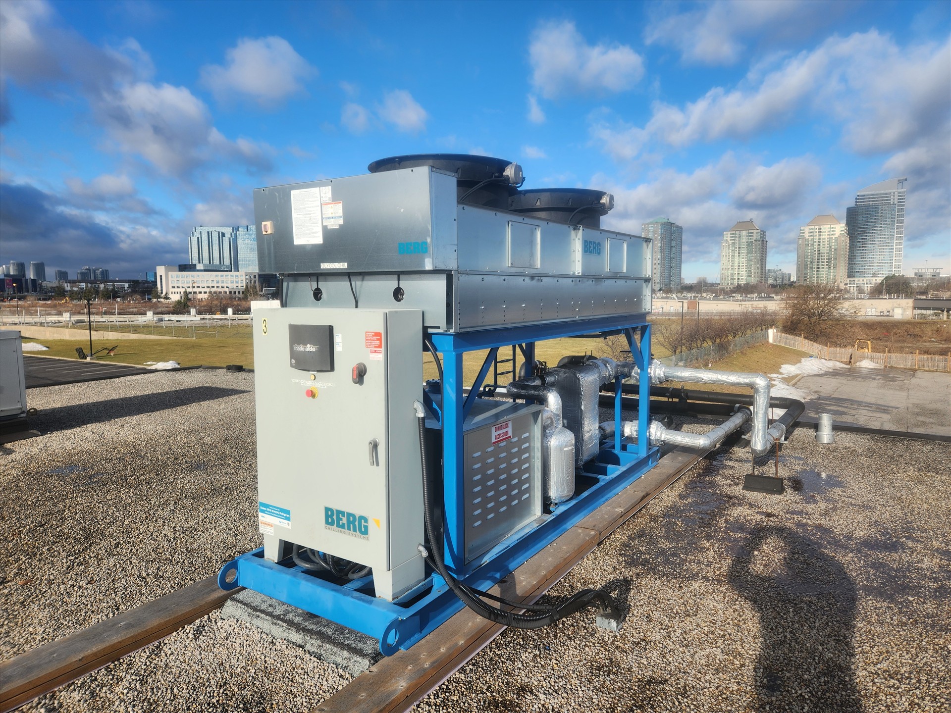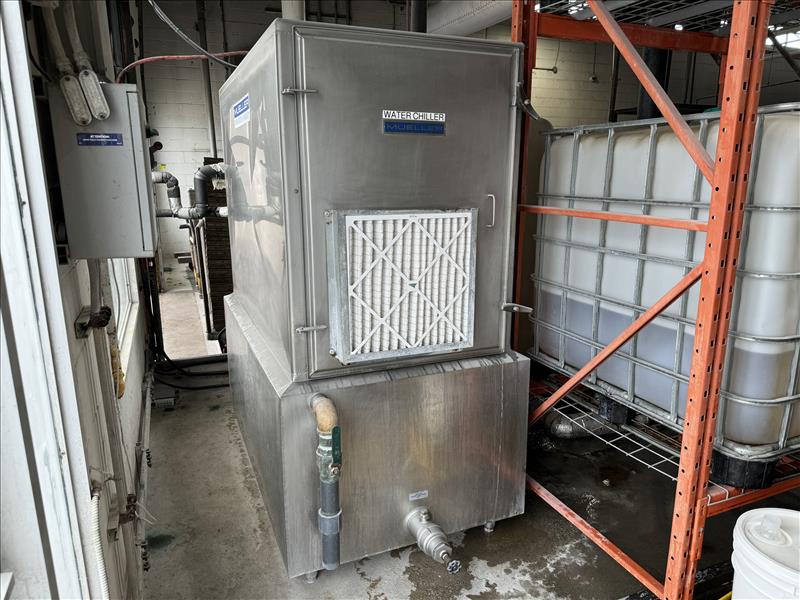 Berg Chiller, mod. APS-30-1, s/n S03796A-AJ1-0521, 157 in. x50 in. x100 in. , 575 volt, SS, 11.7 Tons Glycol (40% propylene glycol) with 50.1 GPM flowrate pump, and Glycol tank with 42 in. diameter and 73 in. height. [Loc. Dough Mixing - Bulk Storage]