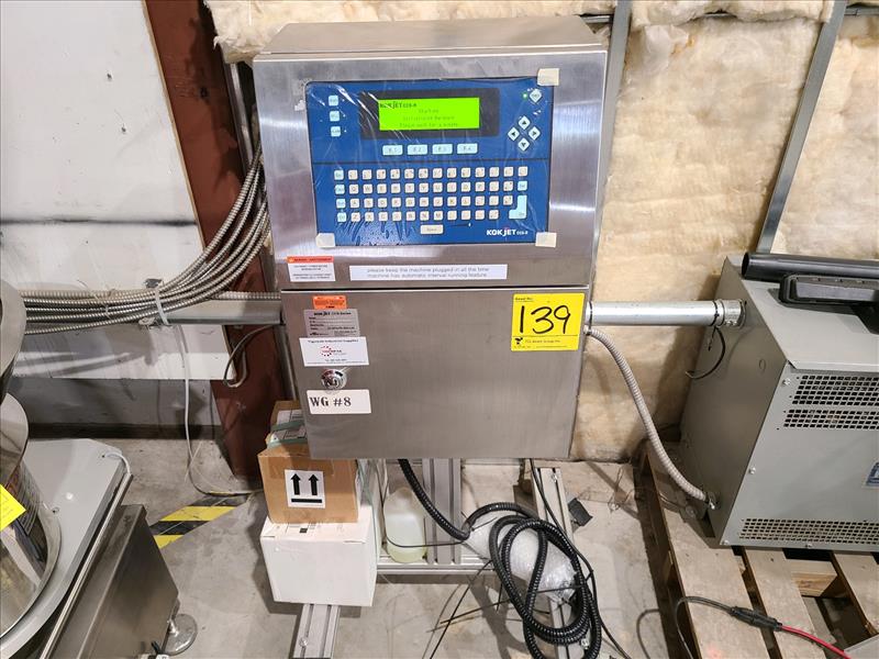 Kishu Giken Kogyo (KGK) Inkjet Printer, model CCS-R, S/N CRA6DB7A2H, 0.9A, Approx. 120 Volts, 60Hz, casters