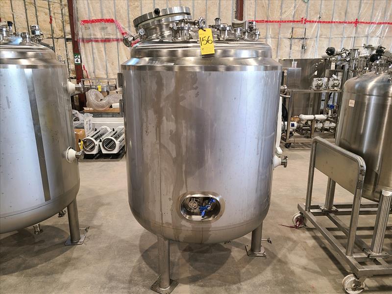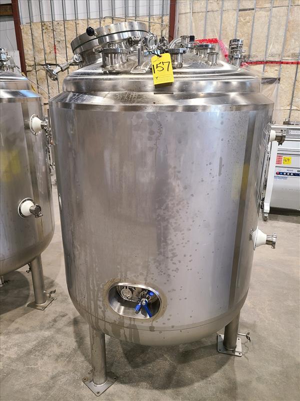 Industries D acier Inoxydable Itee Tank, approx. 1000L capacity, model 3-3-F-X-TMR-3-2, S/N 309, stainless steel, w/CIP spray ball, bottom mounted mixer, 2.1A, 575 Volts, 60Hz (2018)