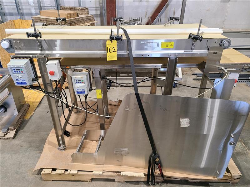 AquaGard Dorner Waterfall Conveyors, top conveyor approx. 4 ft. x 2 ft., bottom conveyor approx. 6 ft. x 18 in., model 722MI80600C0102, S/N 741234-7-7-2, w/stainless steel motor, frame, and variable speed drives (2018)