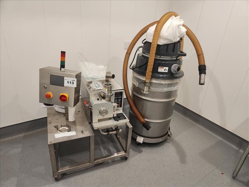 Fritch Universal Cutting Mill, model Pulverisette 19, S/N 19.3030/00573 w/ SAMS P19 Semi-automatic Milling System, and Nilfisk Drum Vacuum Kit (2020) [Located in Vaughan, Ontario]