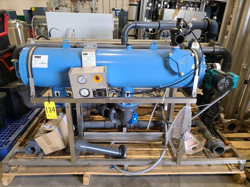 Priva UV-C Light Water Disinfection System, model Vialux M-Line M6, w/ (6) Priva Vialux M-Sense chambers, UDI 6Matic Self-Cleaning Filter, model 4U706M04-40, Grundfos Acid Pump, VLT Aqua Drive, control panel, and extra bulbs (2018) (New, never installed)