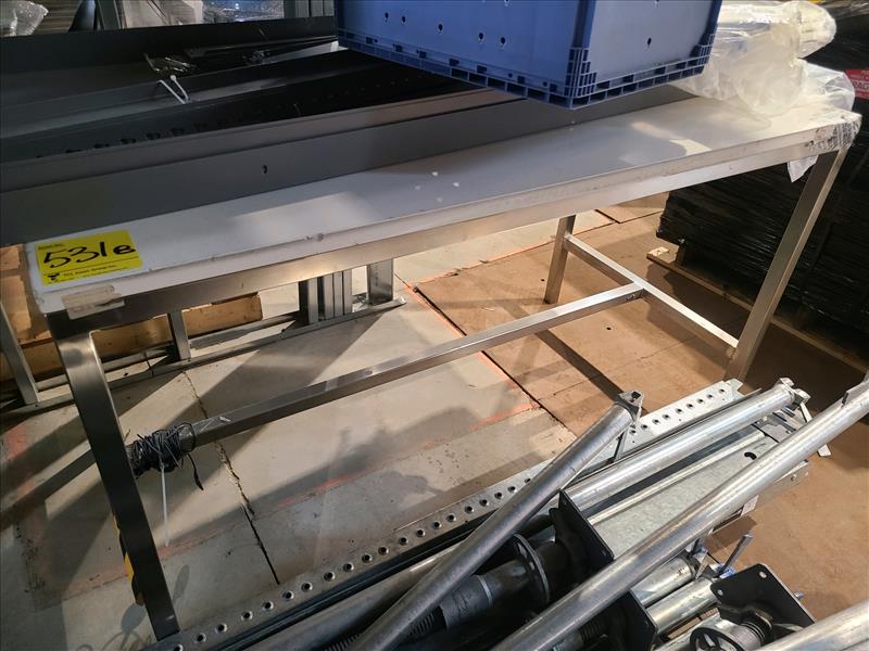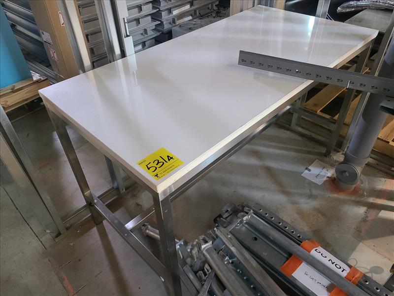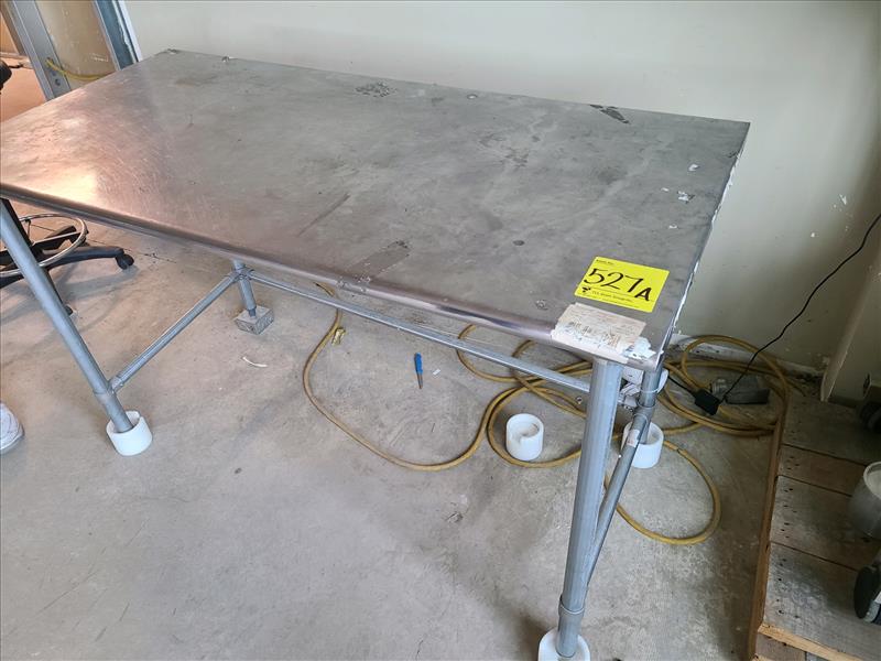 Table, stainless steel frame, w/plastic top, approx. 60 in. x 30 in.