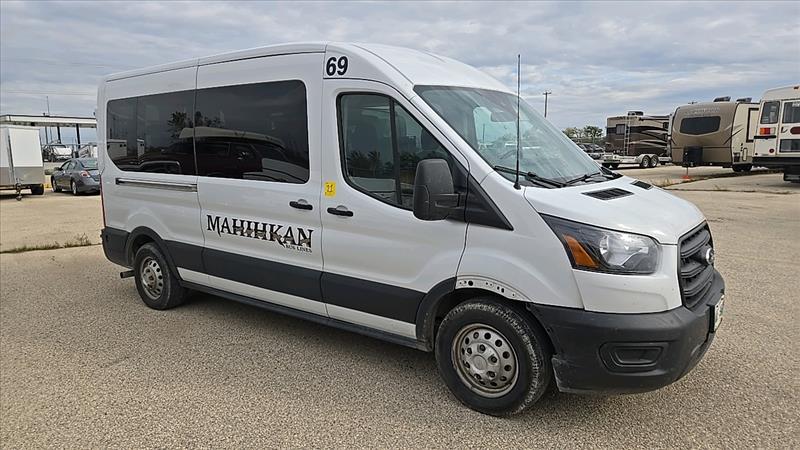 (2020) Ford Transit Shuttle Bus, model 350 WB 148 XLT, 15 seats, Bus number 69, VIN 1FBAX9C85LKA05973, 387509 KM, Gas, 6 Cylinder, as-is-where-is, Cracked windshield, Safety valid until Nov. 2024