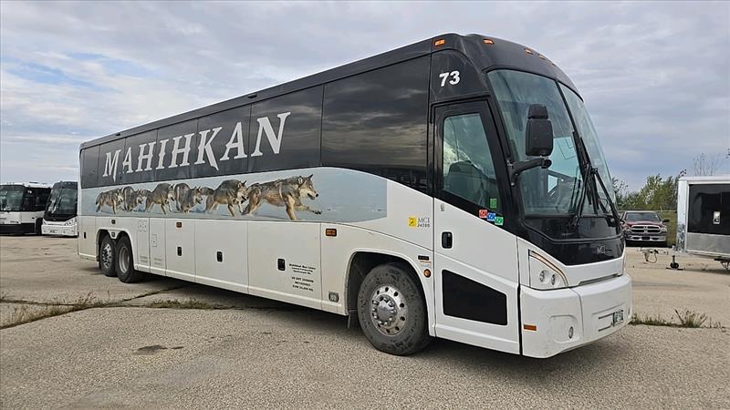 (2017) MCI Passenger Coach Bus, model J4500, 6 cylinder, 56 seats, Seat belts, USB plugs, Over parcel bins, Washroom, 5 monitors and DVD player, Kneeling bus, 110 volt plug-in, Cummins Allison engine, Operational, Bus number 73, VIN 2MG3JMBA6HW068173, 614020 KM, as-is-where-is, Fully operational, Safety valid until Feb. 2025