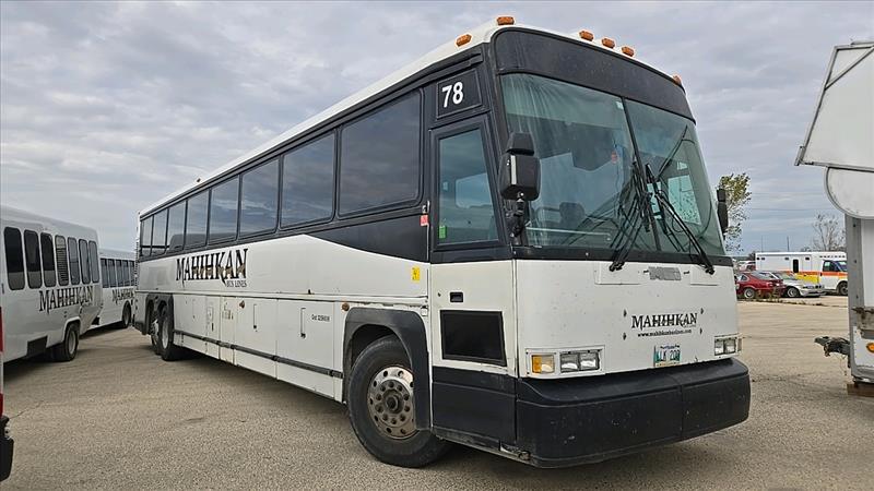 (1999) MCI Passenger Coach Bus, model 102-DL3, (1999), 55 seats, DVD player, 6 CRT monitors, Kneeling bus, Overhead storage, Washroom, Seatbelts, Window Shades, Detroit Allison engine, Bus number 78, VIN 1M8PDMPAXP052365, 321,897 KM, as-is-where-is, Safety expired Aug. 2024