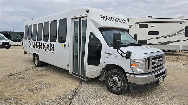 (2021) Ford Econoline SD Cutaway Shuttle Bus, model E-450, 8 cylinder,? 24 seats, washroom, Gas engine, washroom, Back up camera, Bus number 76, VIN 1FDFE4FN0MDC07486, 270652 KM, as-is-where-is, Cracked windshield, Current safety expired Aug 2024