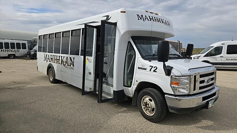(2018) Ford Econoline SD Cutaway Shuttle Bus, model E450, gas engine, 28 seats, rear door access, double door, Bus number 72, VIN 1FDFE4FS9JDC26295, 321671 KM, Gas Engine, 10 Cylinder, as-is-where-is, Safety valid until Jan. 2025