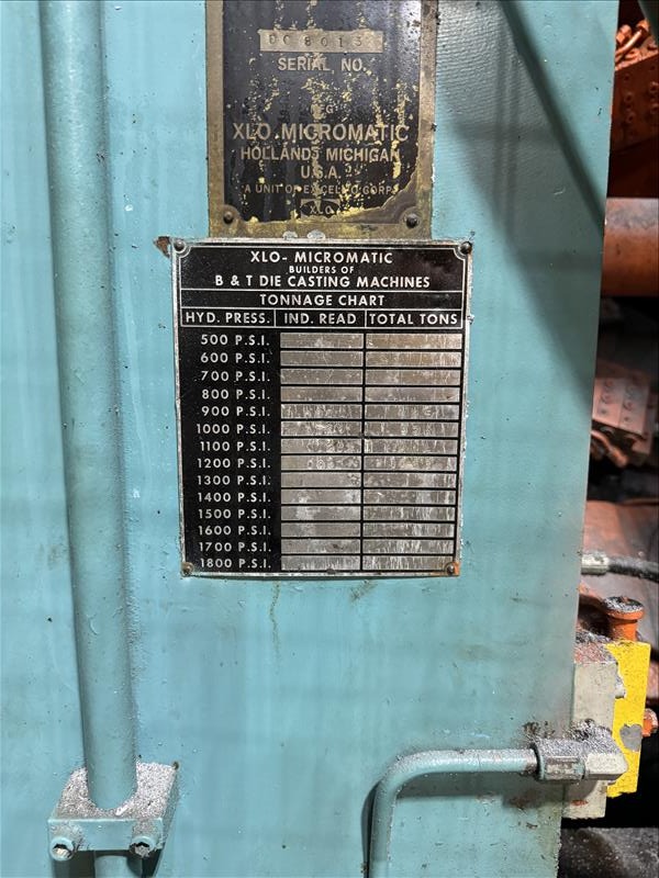 B and T model 34647 1030 ton cold chamber die cast machine model 34649 s/n dc8015 w/ controls (further specs can be provided) [Loc. Plant]