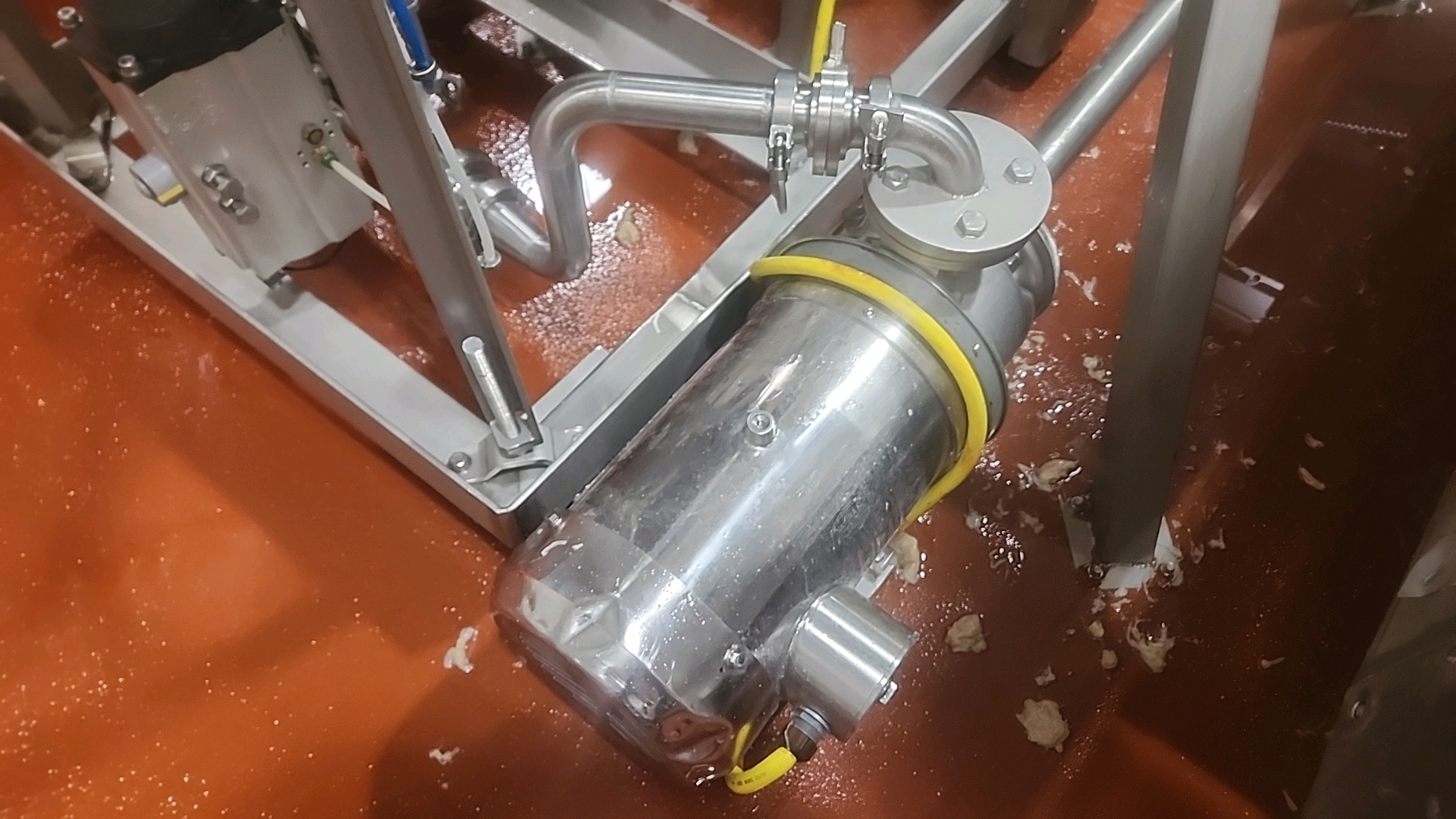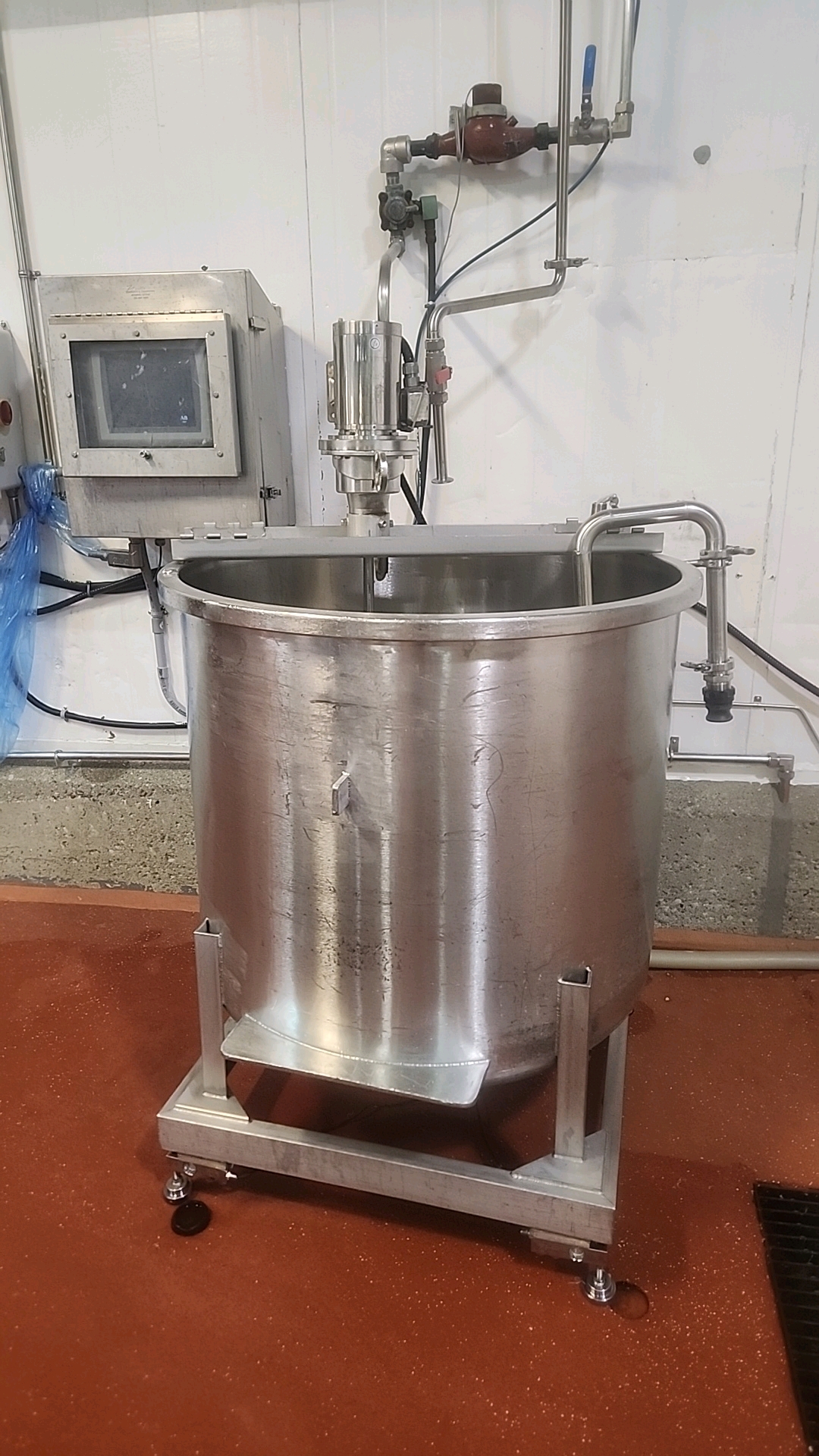 chilled water tank, stainless steel, approx.. 52 in. dia. X 78 in. w/ 1/2 hp washdown mixer, 5 hp washdown centrifugal pump c/w control panel [Loc. Massage]
