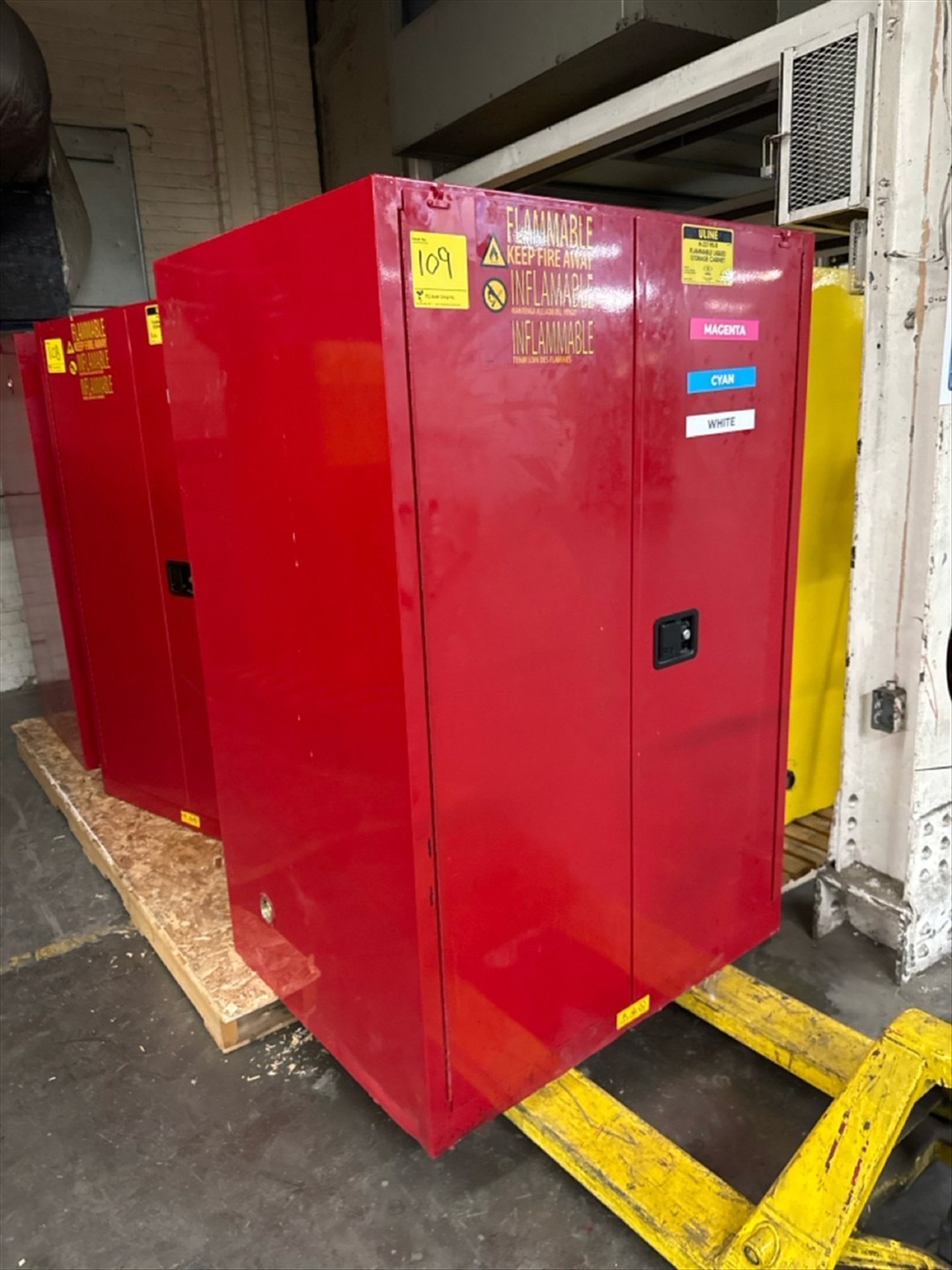 Uline Flammables Cabinet, Mod. H-2219S-R, 90 Gal. Cap. [Loc. Greenwich, Flr. 3]