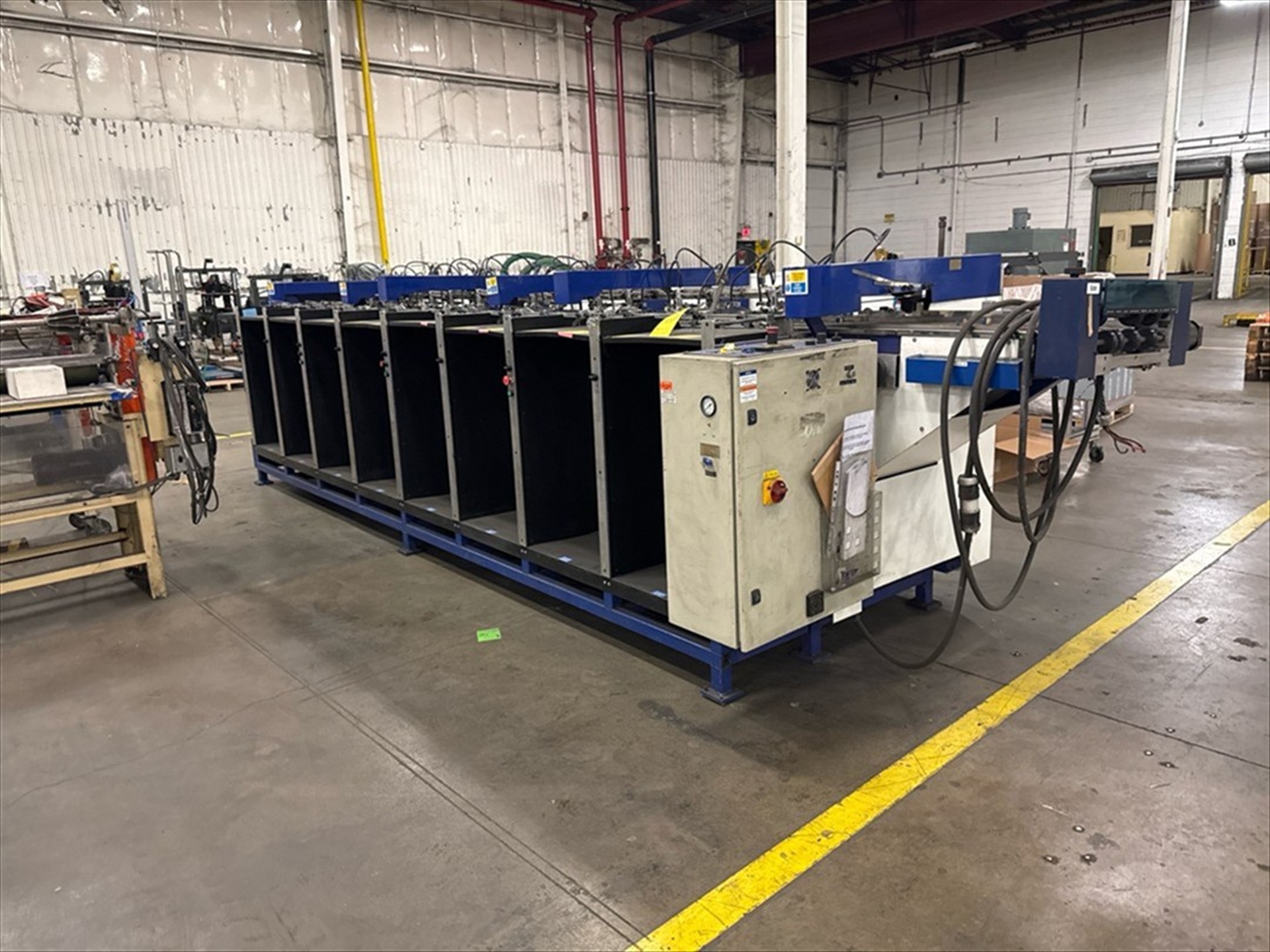 M and R Mod. HPP6480-5/10UV Screen Printer, Automatic, 5-Color, In-Line, E900 Digital Control System, UV Dryer After Each Print Section, Approximately 64 in. X 80 in. Print Areas, W/ Exhaust Blowers (5) New York Blowers (4) Siemens Vacuum Blowers, Ser. No. 069936321H (1999) with spare parts which may include Spare mechanical parts, Pnuematic parts, Pneumatic cylinders, input and output parts, UV control boards, UV bulbs [Loc. Greenwich, Flr. 3]