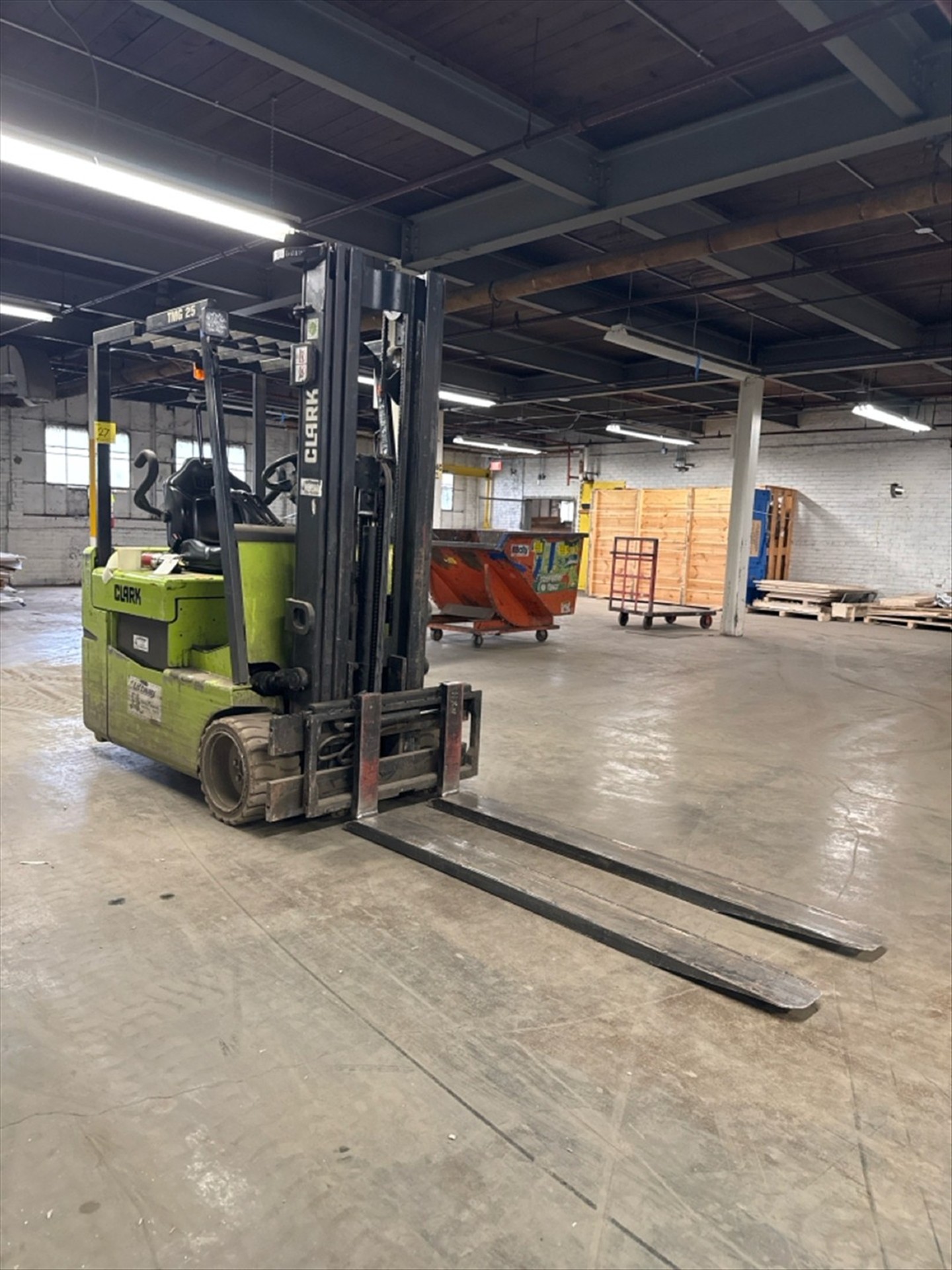 Clark Mod. TMG25 Lift Truck, 36v Electric, 3,900-Kg Cap., 203 in. Max. Lift, 3-Wheel, Side Shift, Ser. No. TMG248-0135-7490FB (1999) [Loc. Greenwich, Flr. 4]