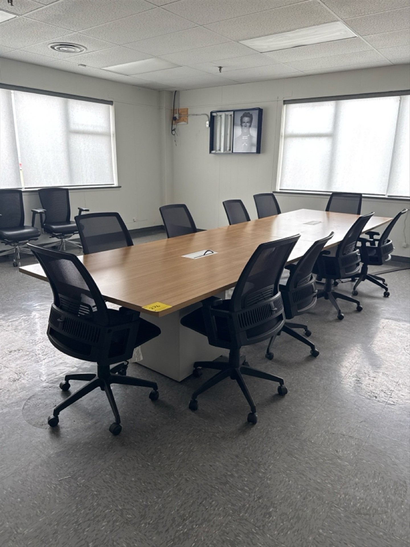 Board Room Table, 4 ft. X 18 ft. (2-Sec.) W/Integrated Elec. Outlets and Ethernet C/W (10) Chairs [Loc. Henry]