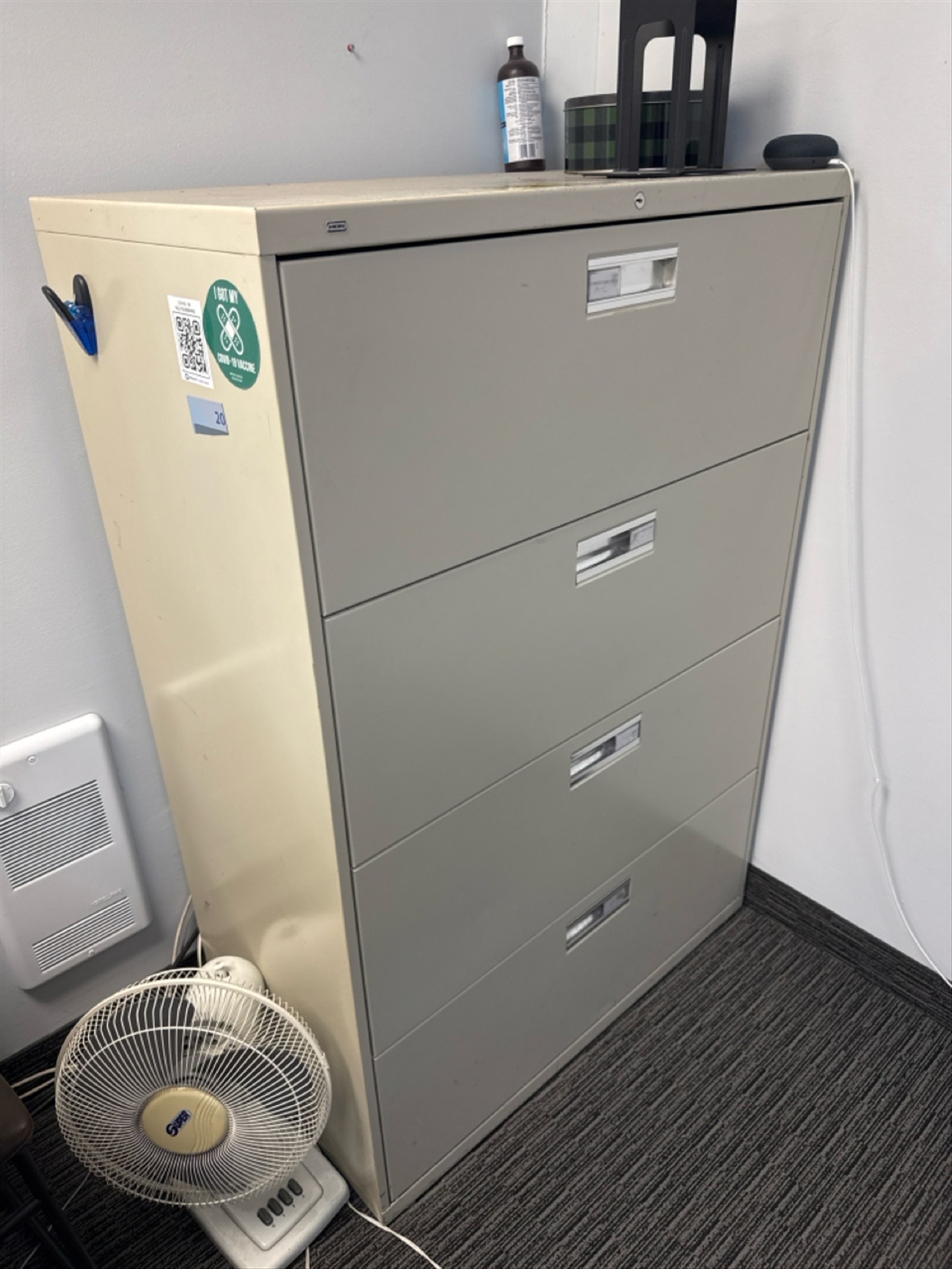 (1) black 4-drawer filing cabinet, (1) beige 4-drawer filing cabinet [Loc. Greenwich]