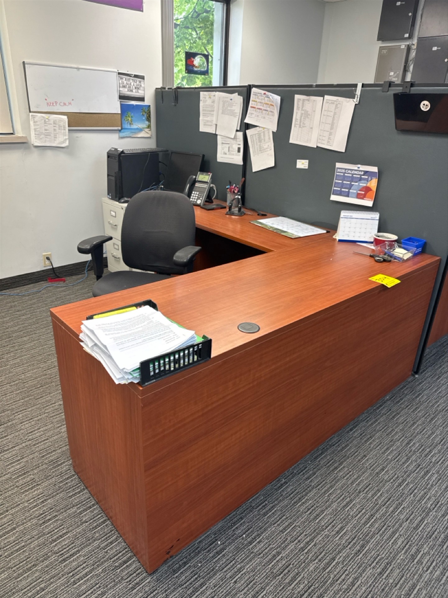 cubicle w/ (4) workstation, (4) chairs and (1) filing cabinet [Loc. Greenwich]