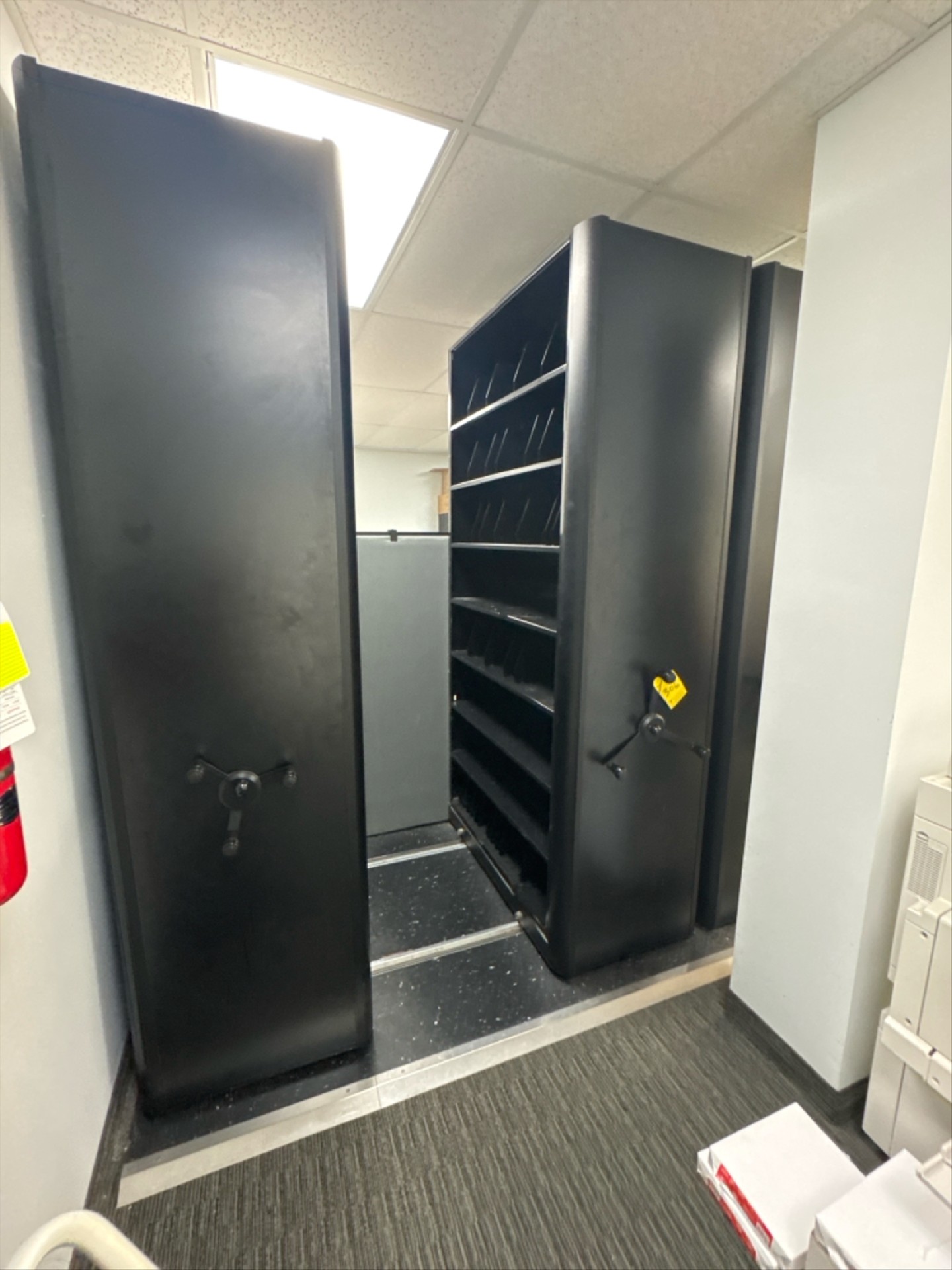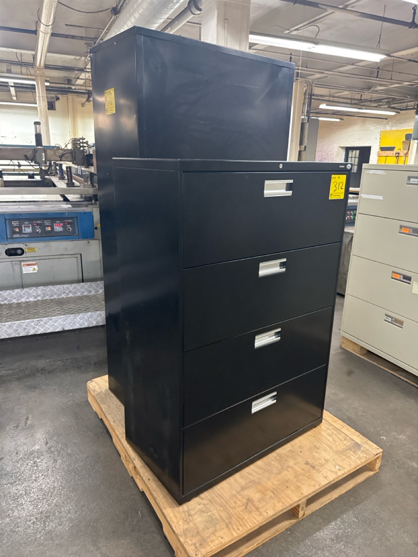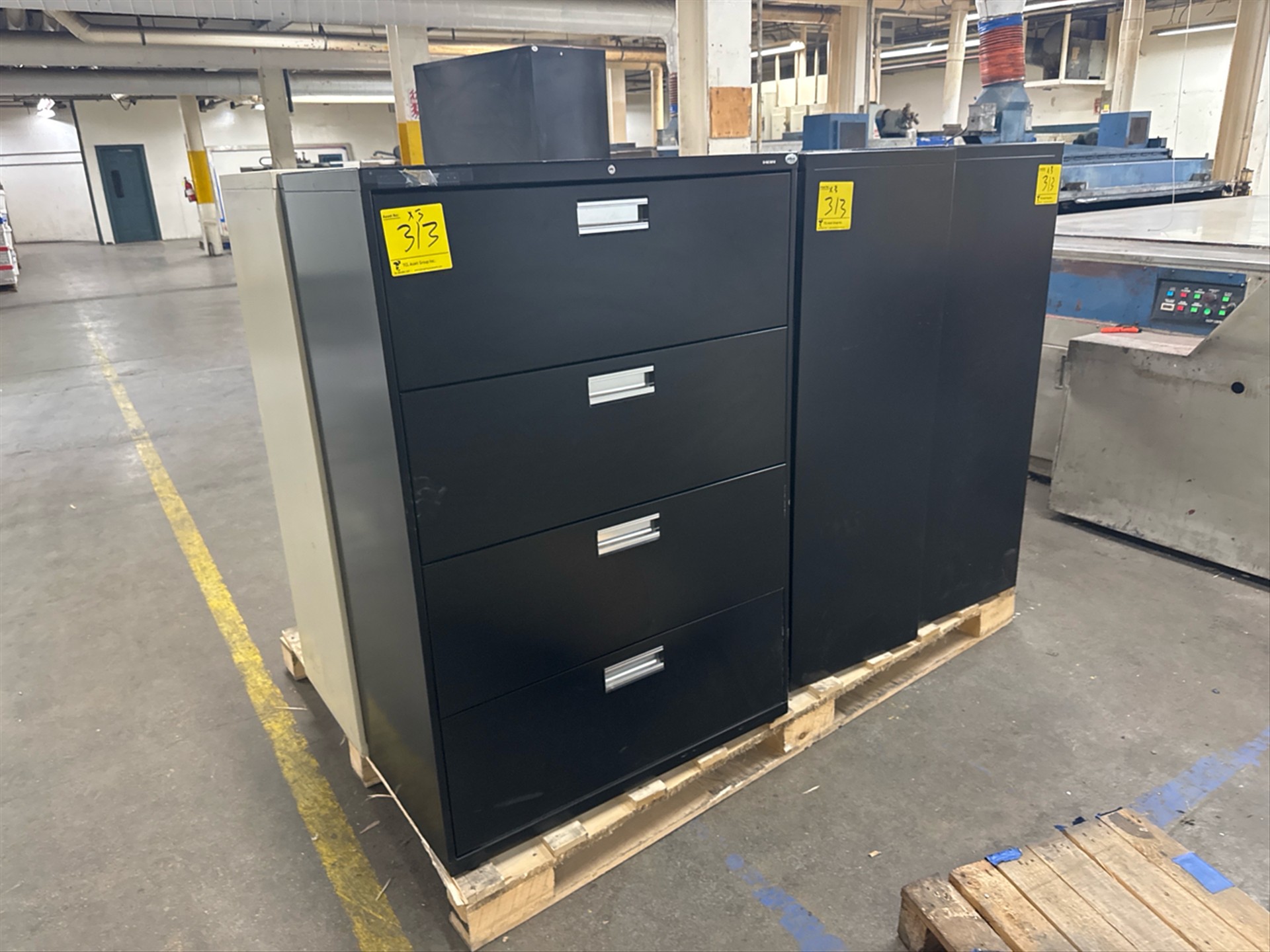 (1) black cabinet, (1) 4-drawer filling cabinet [Loc. Greenwich]