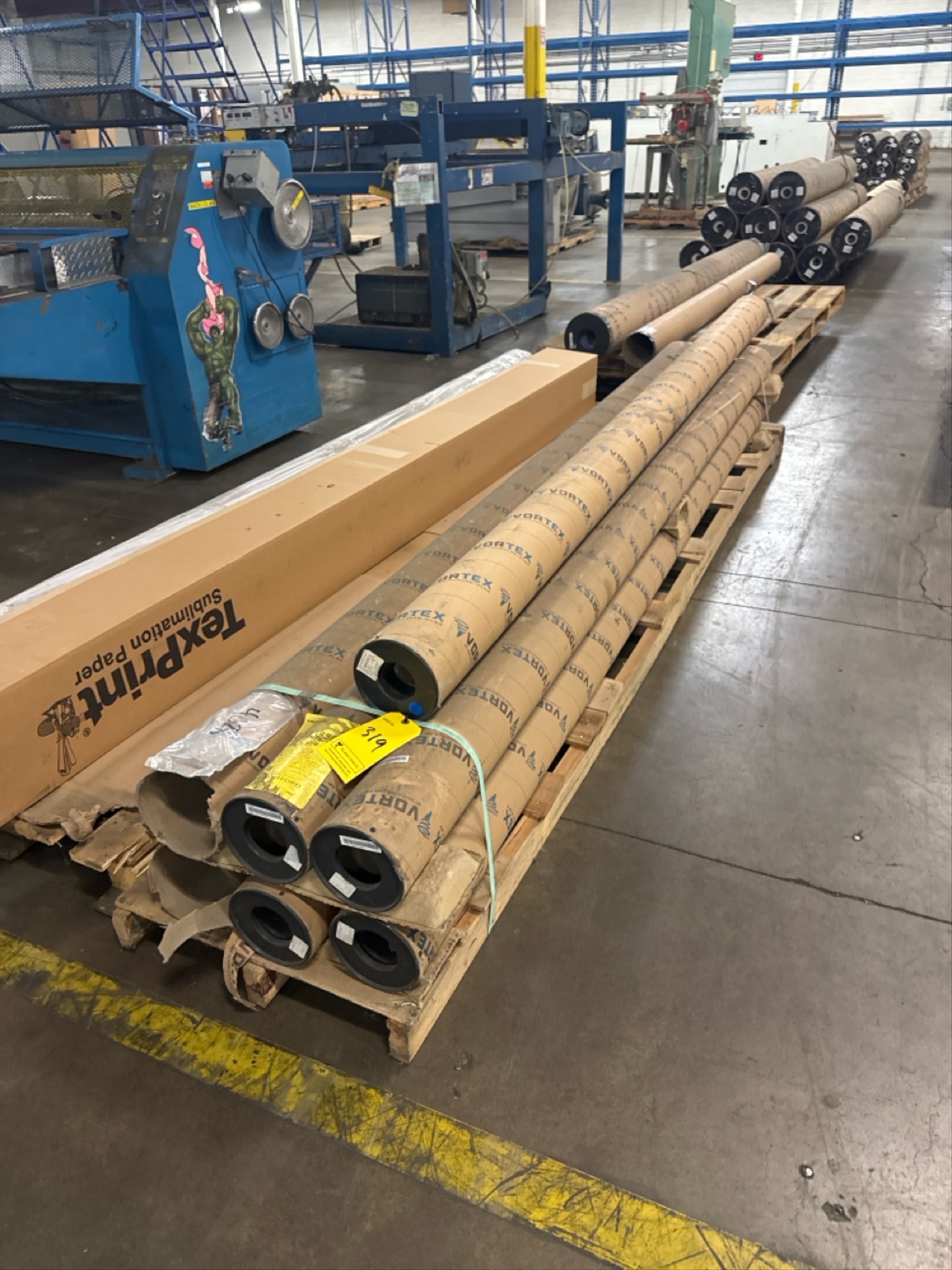 (9) Rolls of TVF Dye sub material, 5.2 oz soft knit fabric 75Dx100D Polyester, Various Sizes, Approx. 126 inch x 291 foot (Subject to Confirmation) [Loc. Henry]