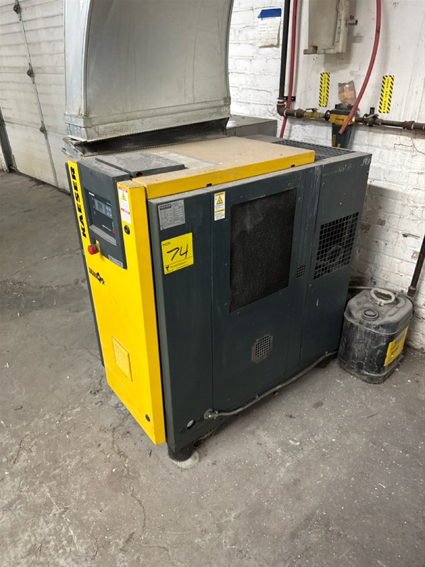 Kaeser Mod. Sm10t Rotary Screw Air Compressor, 10-Hp, W/ Steel Fab Inc. Vertical Air Tank 120-Gallon Cap., 200-Psi (2007), Ser. No. 1055 (2007) [Loc. Greenwich, Flr. 1]