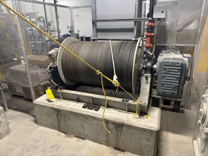 Jeamar electric lifting winch, mod. WLT4000-40-BB, ser. no. 9765 (2016), 30 kW, 16 in dia. X 40 in. drum, 9/16 in. rope, 5700 lbs./200 ft./min./300 ft. cap. c/w starter and transformer [Loc. FAR]