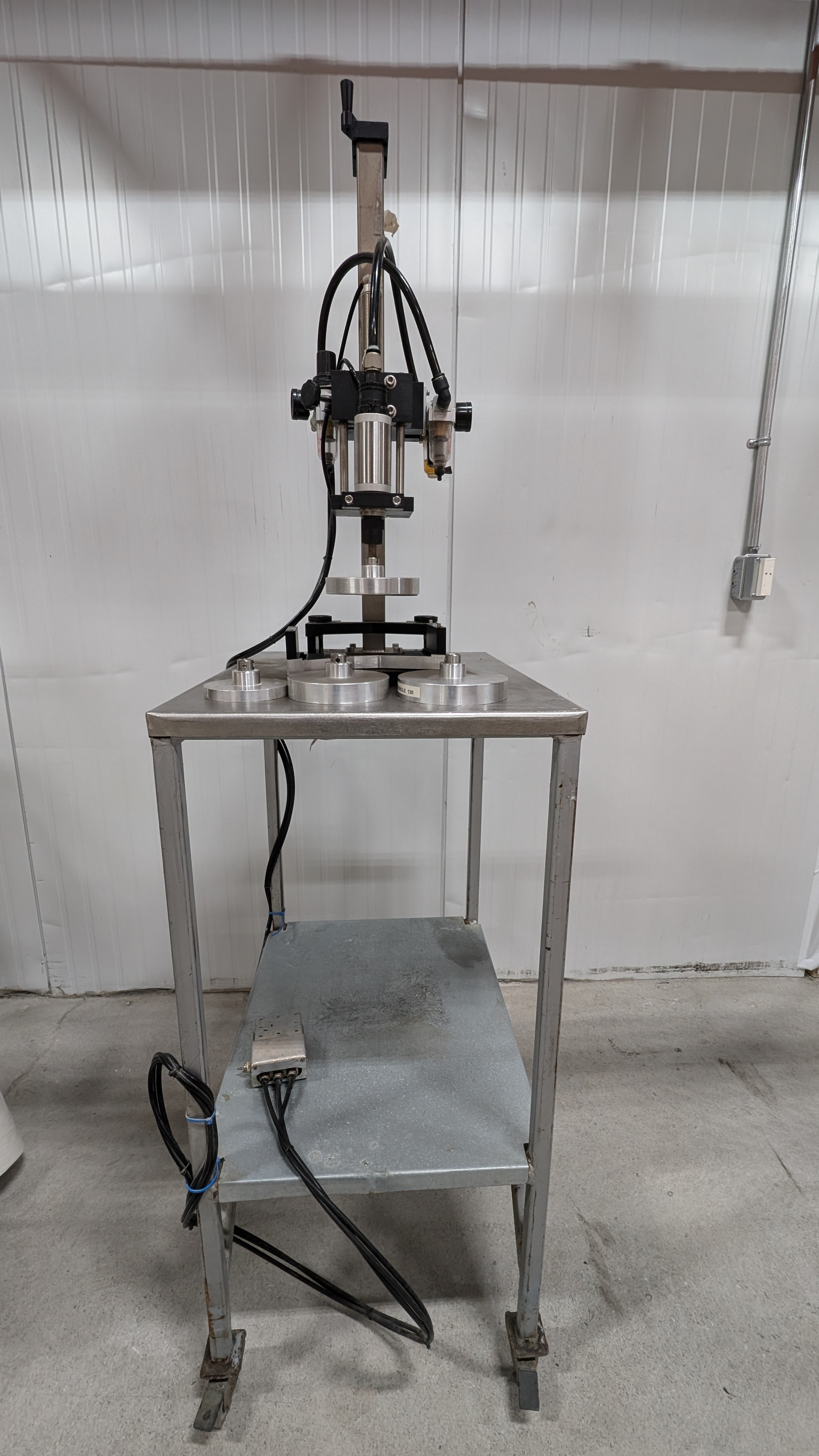 Kinex pneumatic bench top capper, model PS400, s/n 16324 on s/n table with stand (PRO-095)