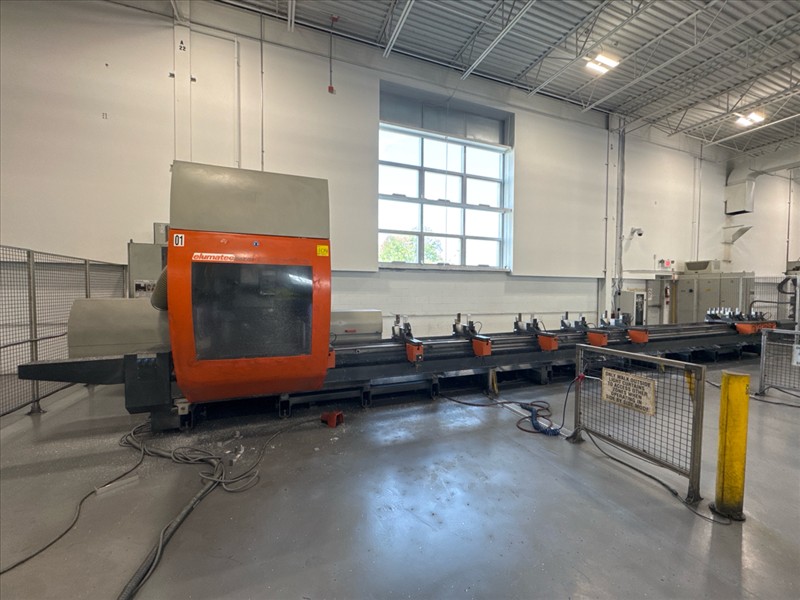 Elumatec Profile Machining Center (5-axis, 10m), mod. SBZ151, ser. no. 1510051304, approx. 40 ft. w/ controller, PLC panel, c/w safety fencing, light curtains, chiller and 47 kva transformer [Loc. Fabrication]