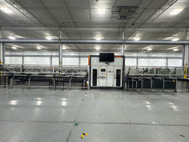 Elumatec 4-Axis Profile Machining Center, mod. SBZ628, ser. no. 6280028115 (2016), w/ touch screen controls, infeed/outfeed conveyors, chip conveyor c/w safety fencing, light curtains [Loc. Fabrication]