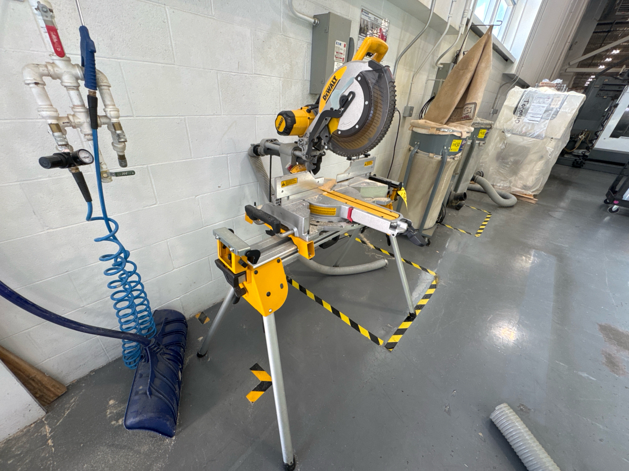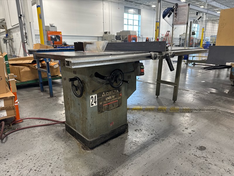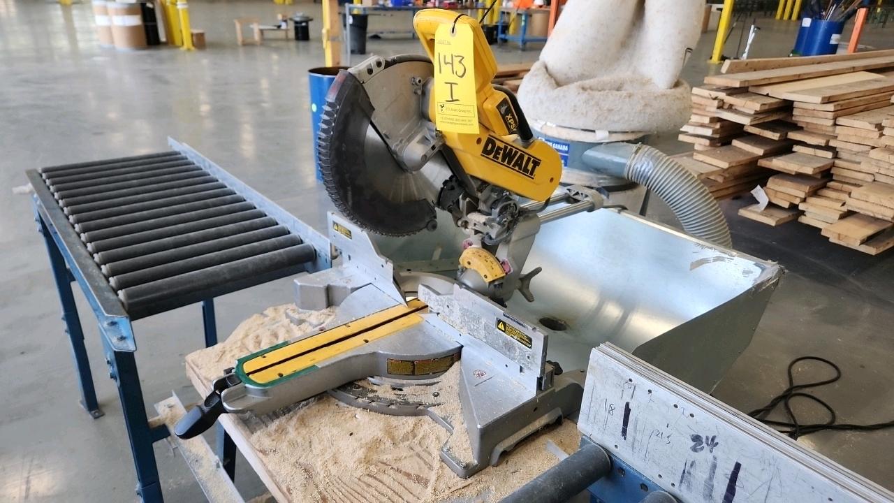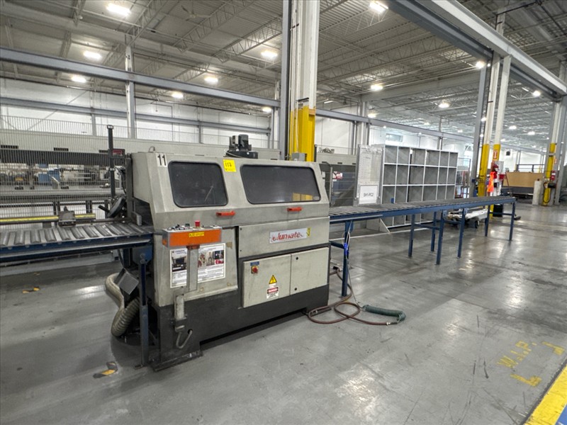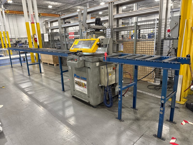 Proline Compound Saw, mod. U50, ser. no. 86577, w/ mobile dust collector, infeed/outfeed conveyor [Loc. Fabrication]