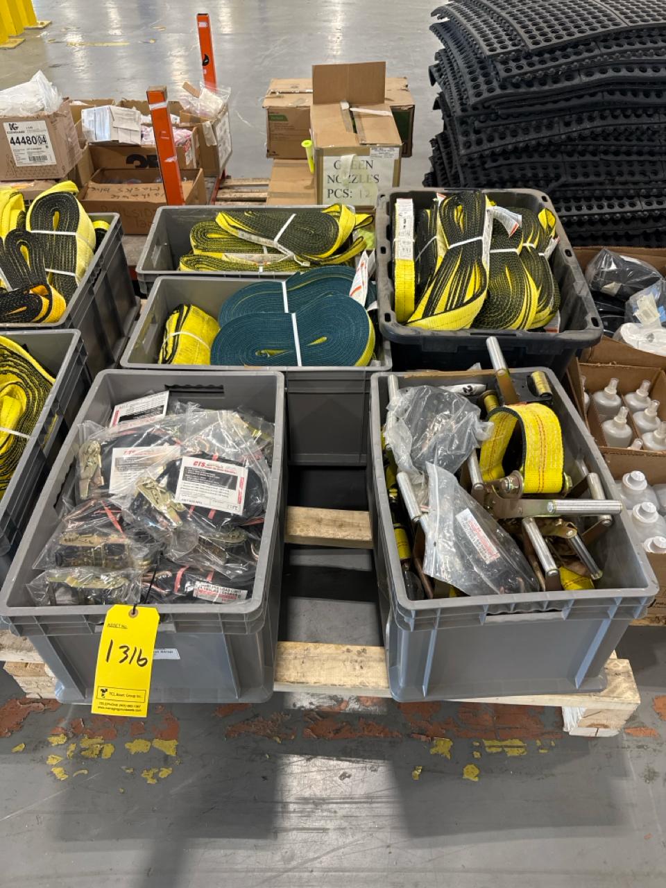 Lot of Assorted Cargo/Lifting Slings and Ratched Straps [Loc. Assembly]
