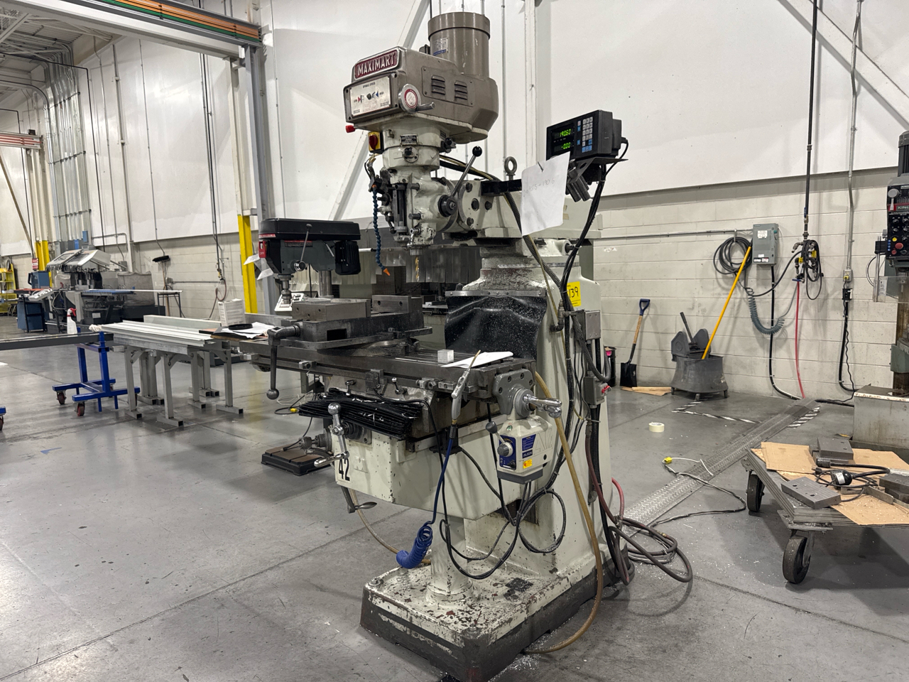 Maximart Milling Machine, mod. 3VS, ser. no. 061106, 3 hp, 10 in. x 54 in. table, auto-aligner, Fagor DRO [Loc. Fabrication]