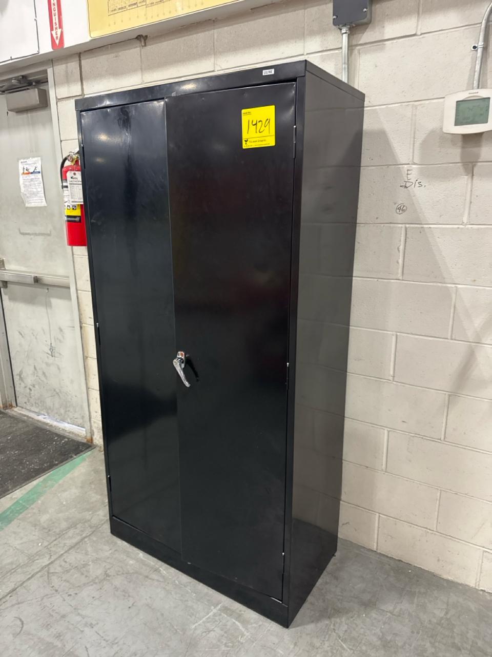 Black storage cabinet, 18 inch depth x 3 feet width x 6 feet height [Loc. Fabrication]