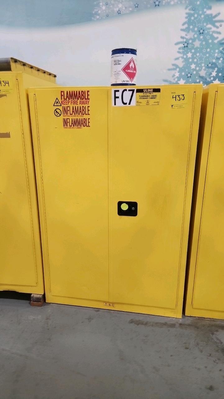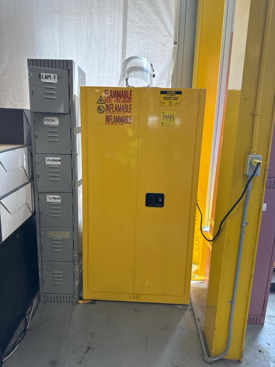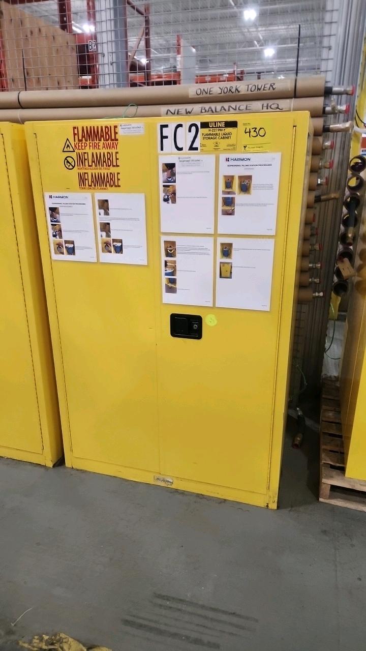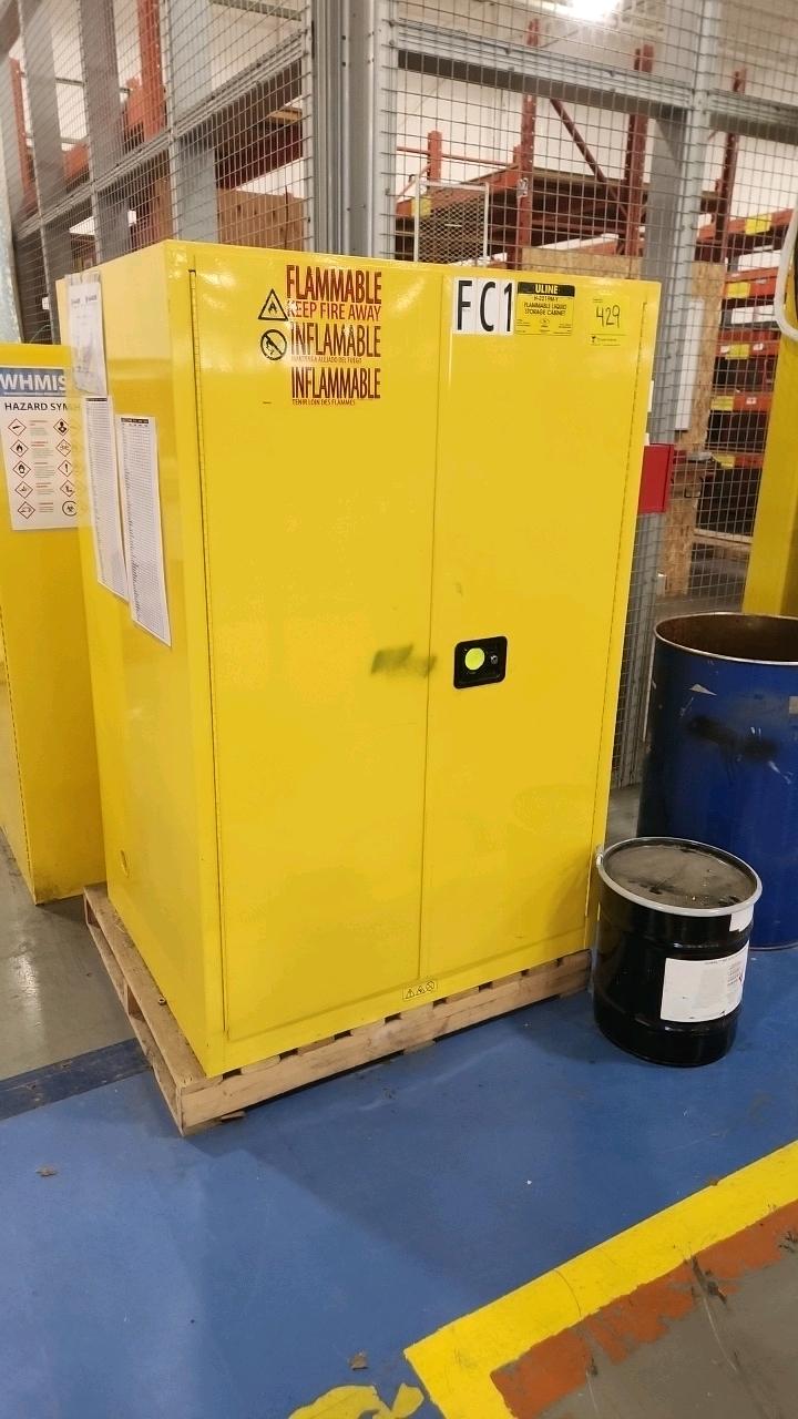 Flammable cabinet 34 inch depth x 34 inch width x 65.5 inch height.