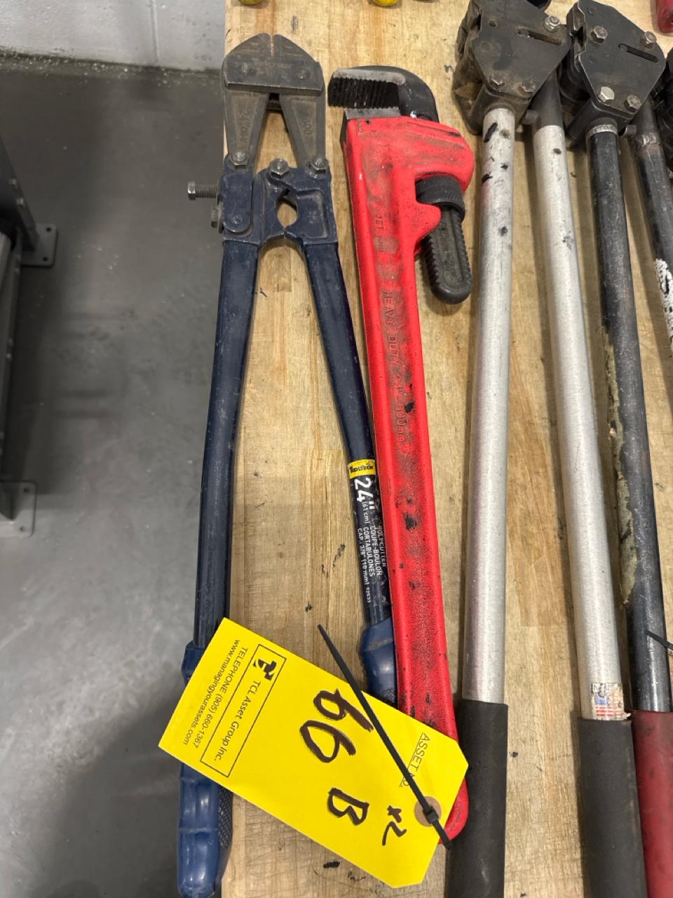 Lot of Pipe Wrench and Bolt Cutter [Loc. Tool Crib]