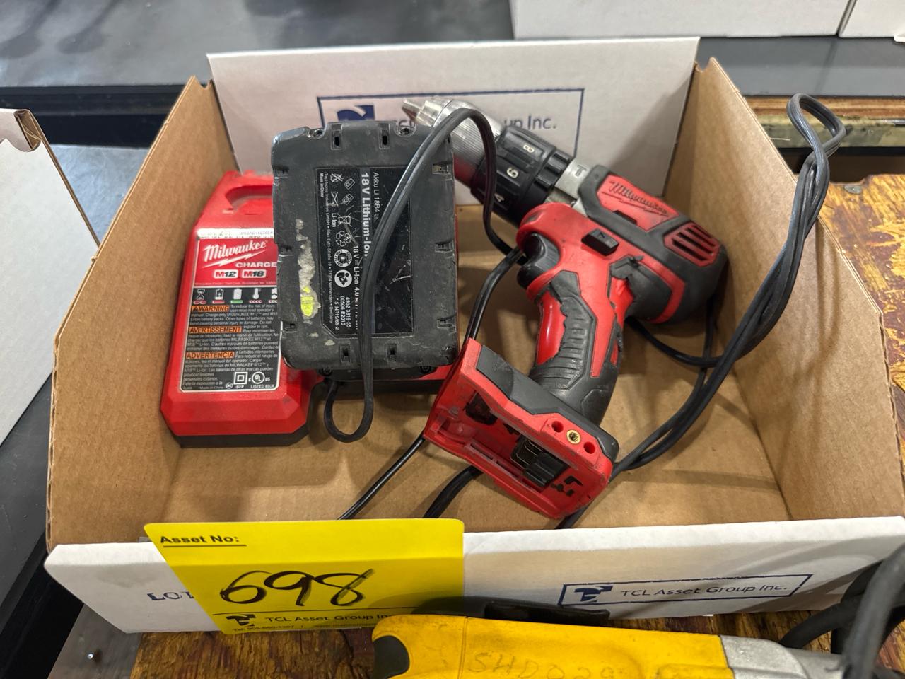 (1) Dewalt cordless drill, (3) Batteries [Loc. Tool Crib]