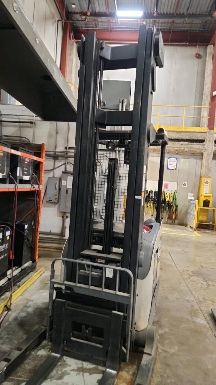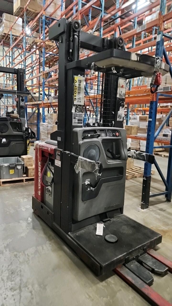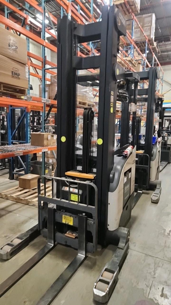 Crown Narrow Aisle Stand Up Reach Truck, mod. RD5725-30, ser. 1A3777139, 36 V., side shift, 3000 lb cap, 9265 Hrs.