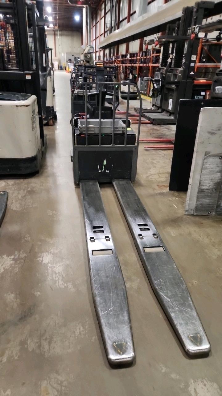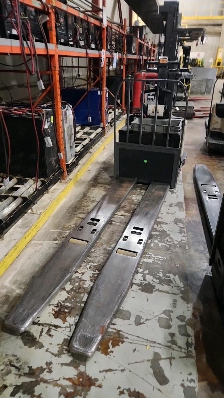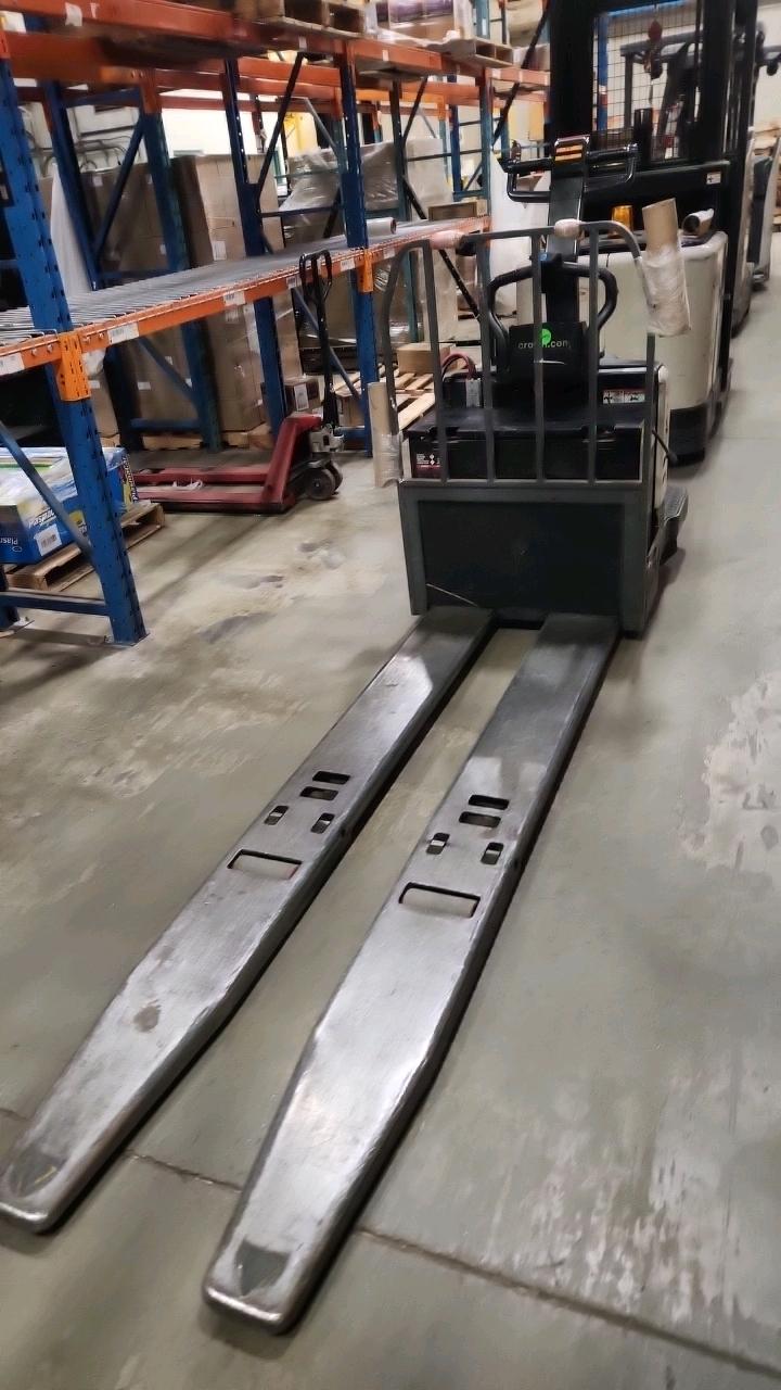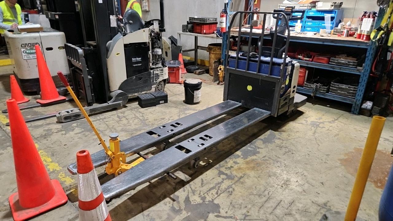 Crown Electric Rider Pallet Jack, mod. PE-4500-80, ser. 10016026+, 24 V., 8000 lb @ 24 inches load centre, extra long forks 27\" W x 93\" L, 4565 Hrs. under repair