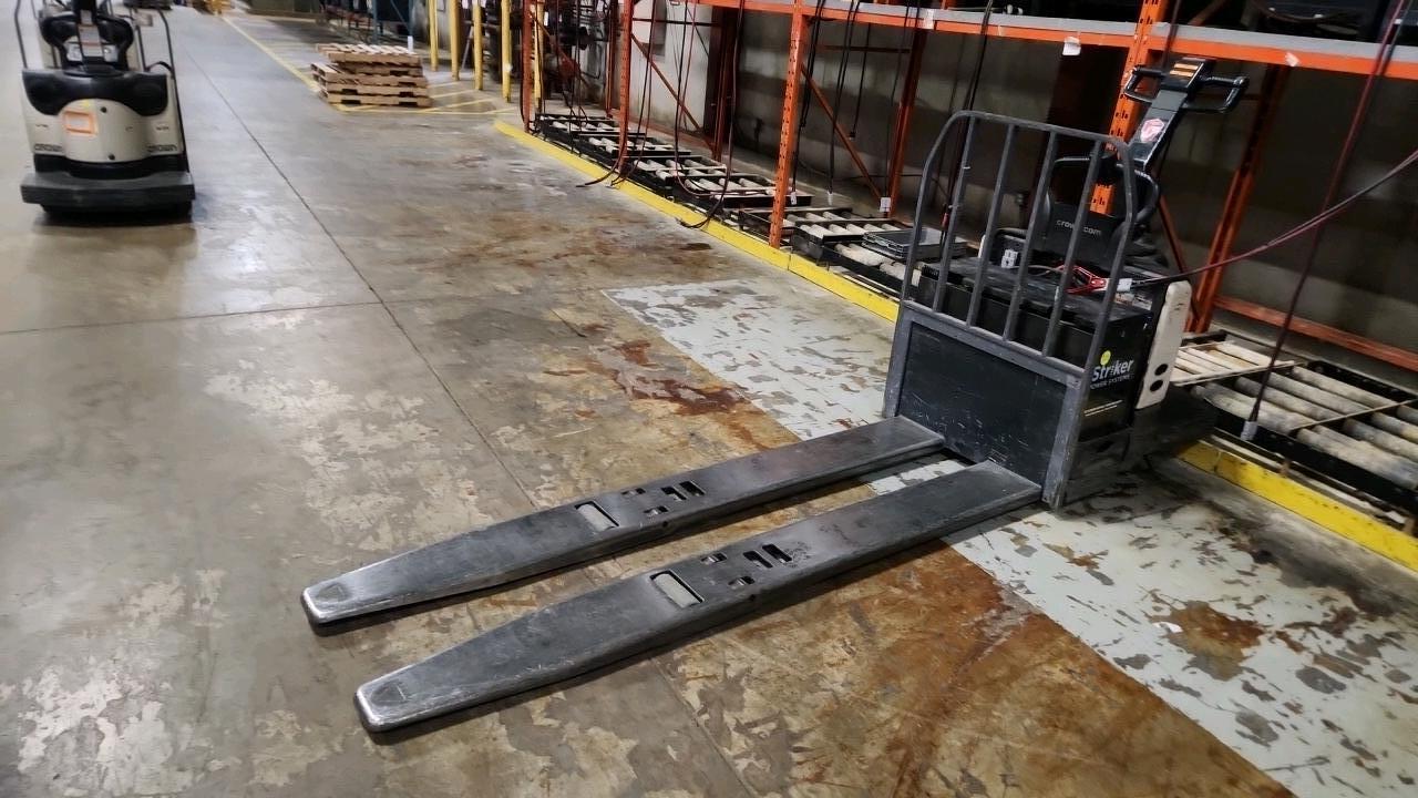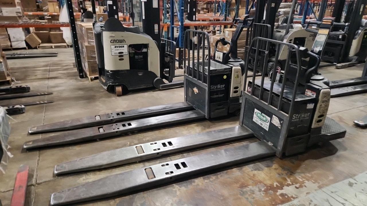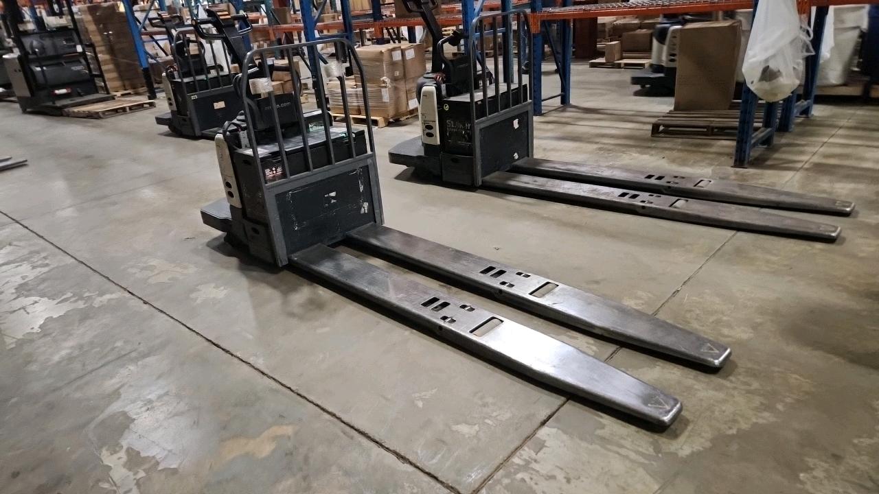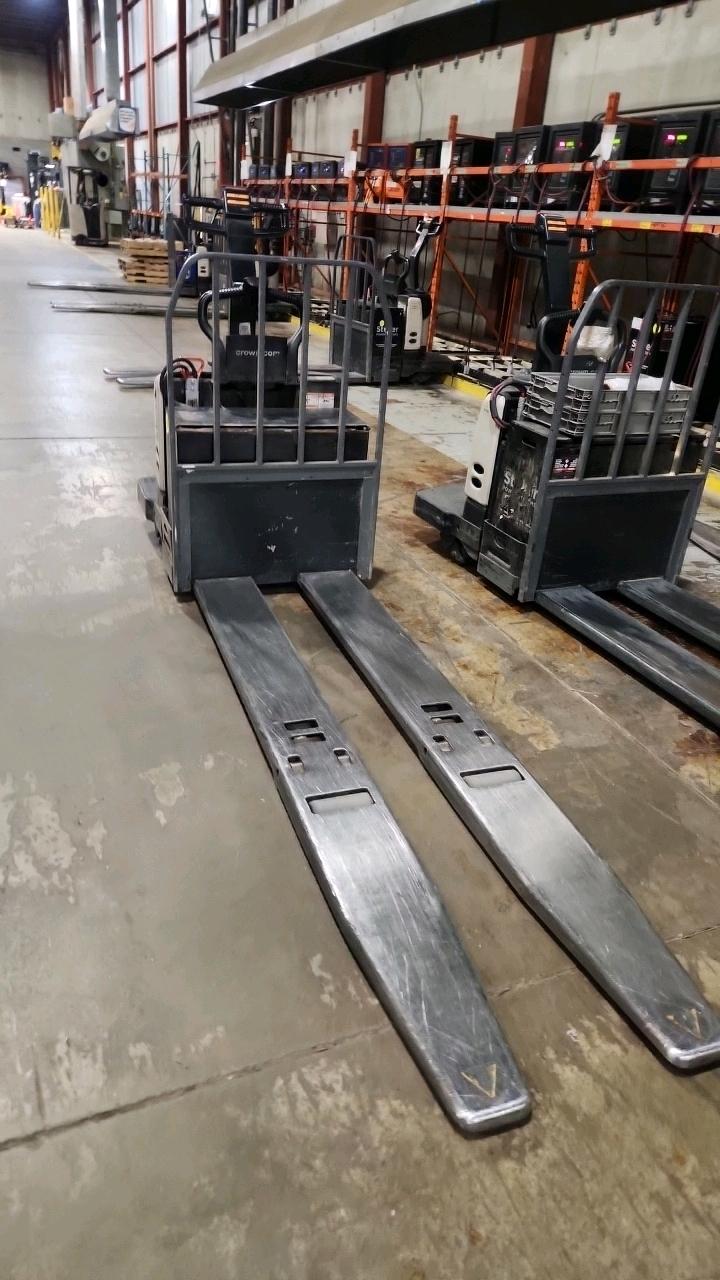 Crown Electric Rider Pallet Jack, mod. PE-4500-80, ser. 10016026+, 24 V., 8000 lb @ 24 inches load centre, extra long forks 27\" W x 93\" L, 4565 Hrs. under repair