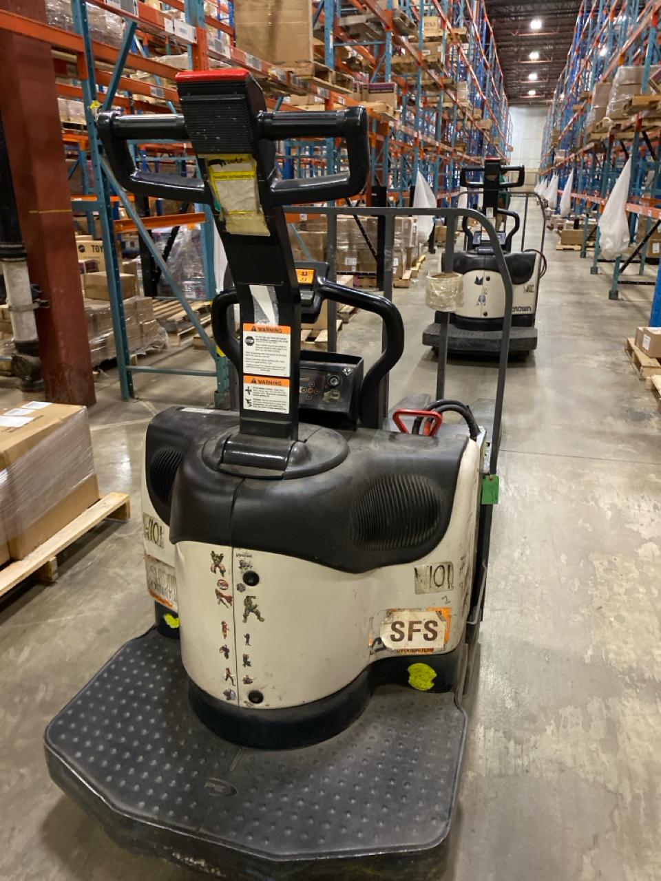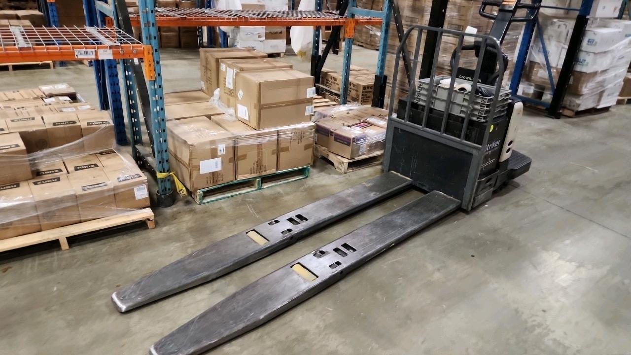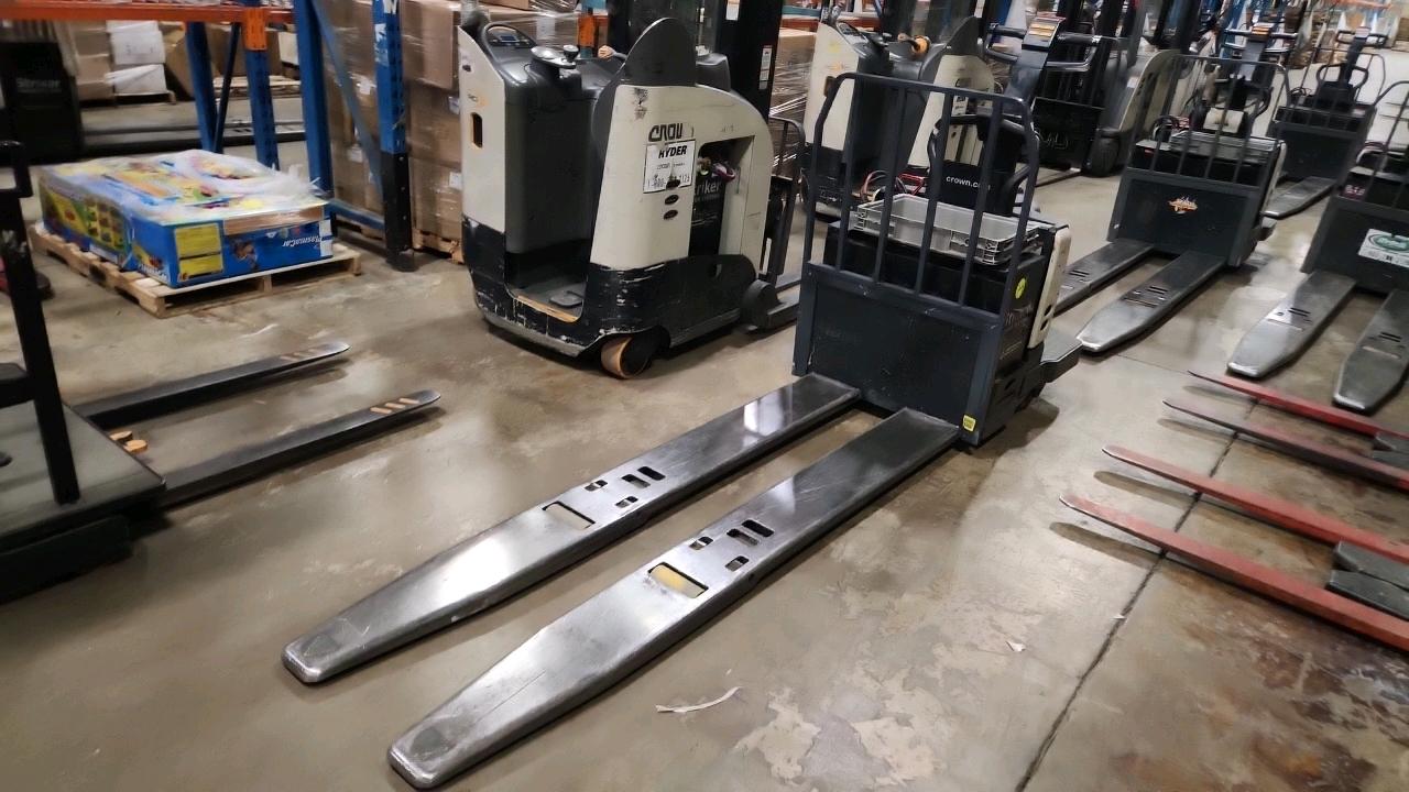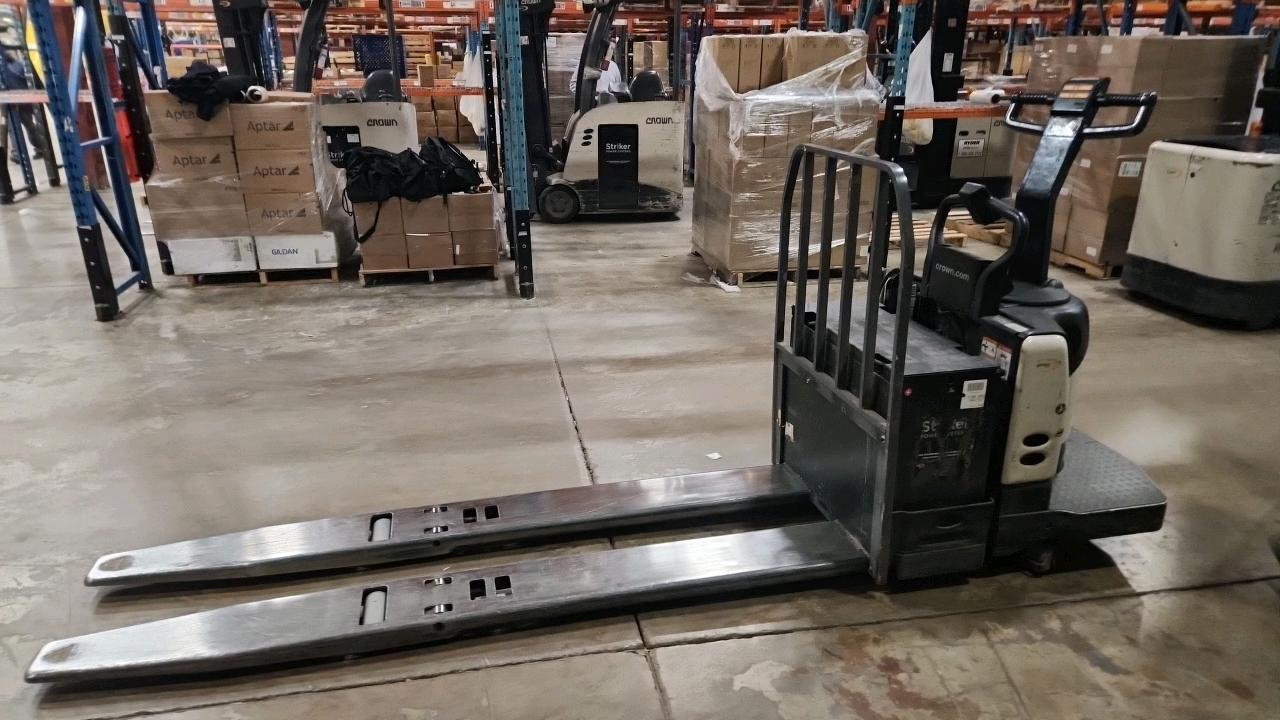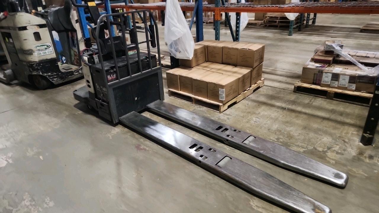 Crown Electric Rider Pallet Jack, mod. PE-4500-80, ser. 10005647 24 V., 8000 lb @ 24 inches load centre, extra long forks 27\" W x 93\" L, 4606 Hrs.