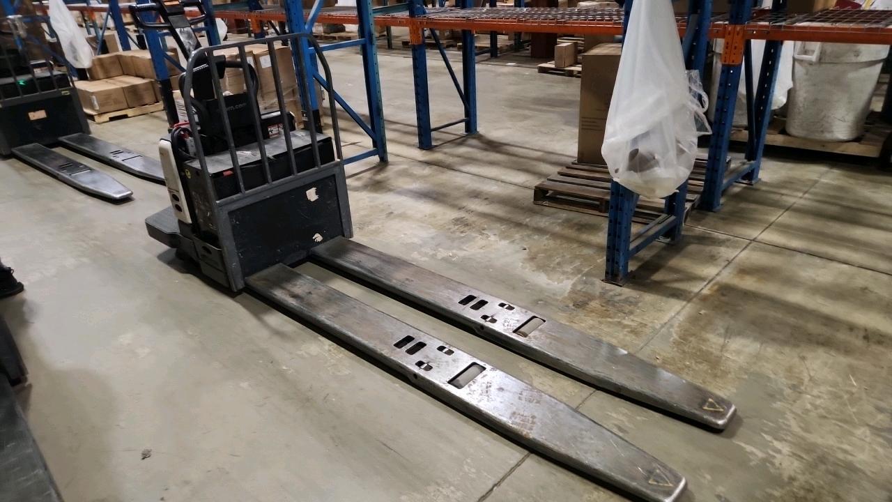 Crown Electric Rider Pallet Jack, mod. PE-4500-80, ser. 10016027, 24 V., 8000 lb @ 24 inches load centre, extra long forks 27\" W x 93\" L, 3674 Hrs.