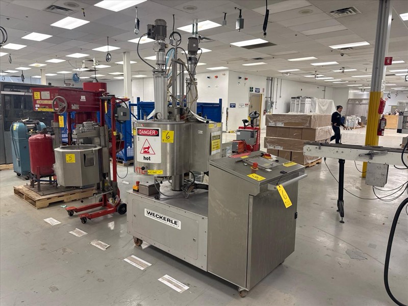 Weckerle Jacketed Double Filling Kettle, mod. HDS 50 L, ser. no. 27097, stainless steel, on casters c/w mixers